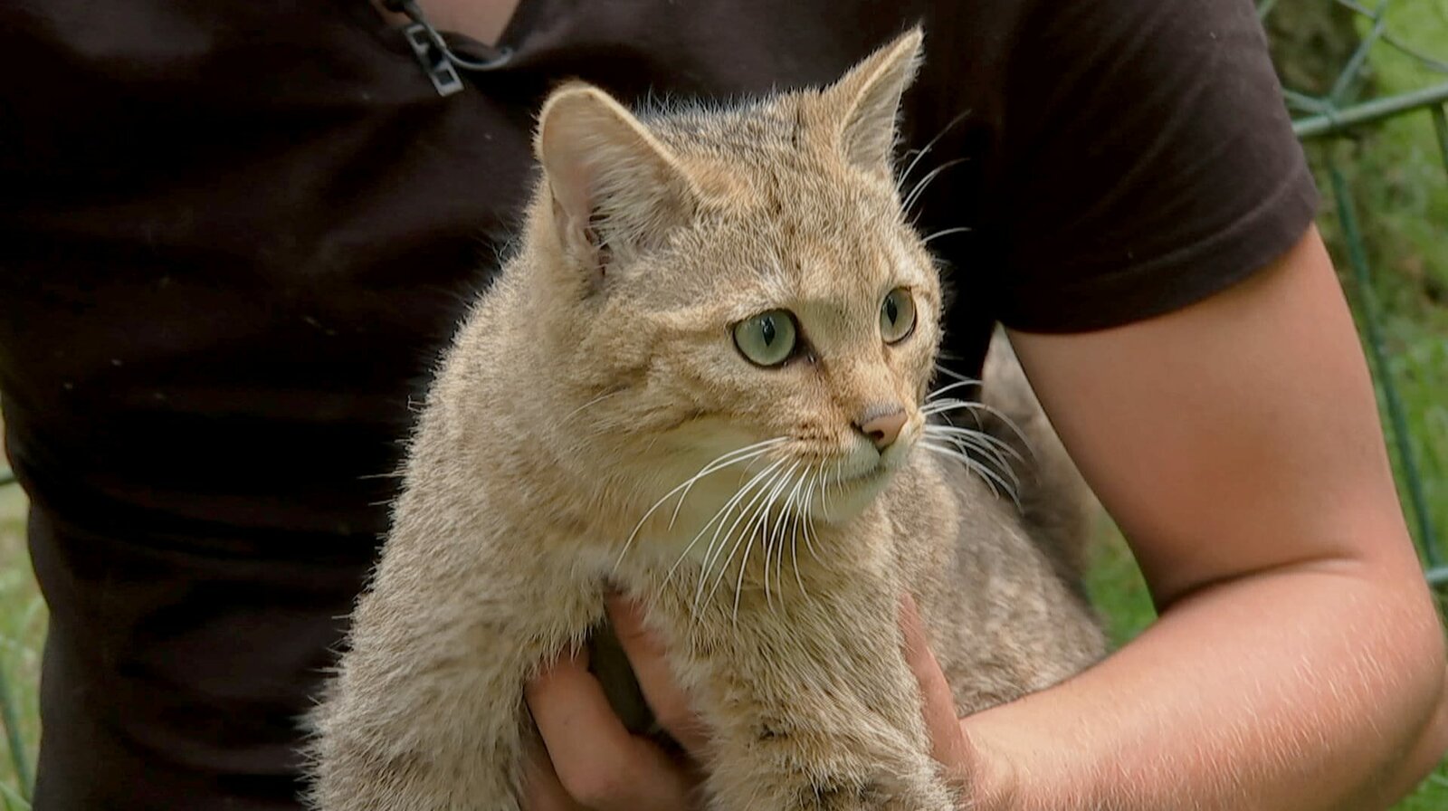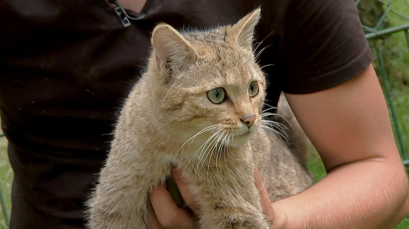 Wischen putzen saugen - alles für die SeebärenDie Wildkatze King Kong im Arm des Pflegers Florian Rimpler vom Opel-Zoo Kronberg.Bild: © BR/HR