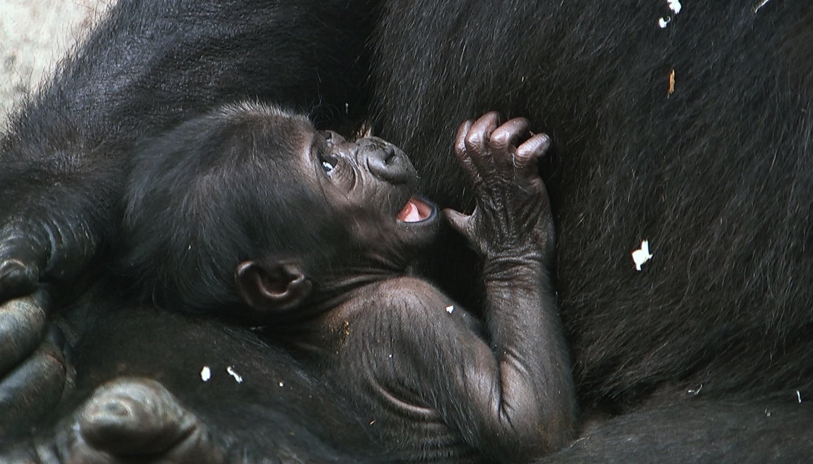 Gorilla-Zwillinge im Frankfurter ZooDians Gorillababy im Frankfurter Zoo ist erst wenige Tage alt.Bild: © HR