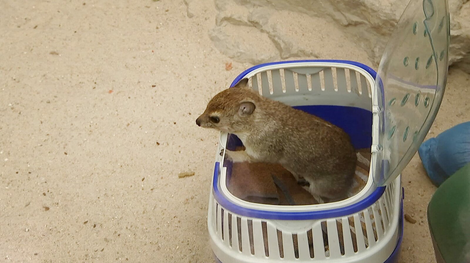 Von Frankreich nach Frankfurt: Orang-Utan Kembali zieht umBuschliefer Baby Tajo im Kronberger Opel-Zoo.Bild: © BR/HR