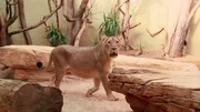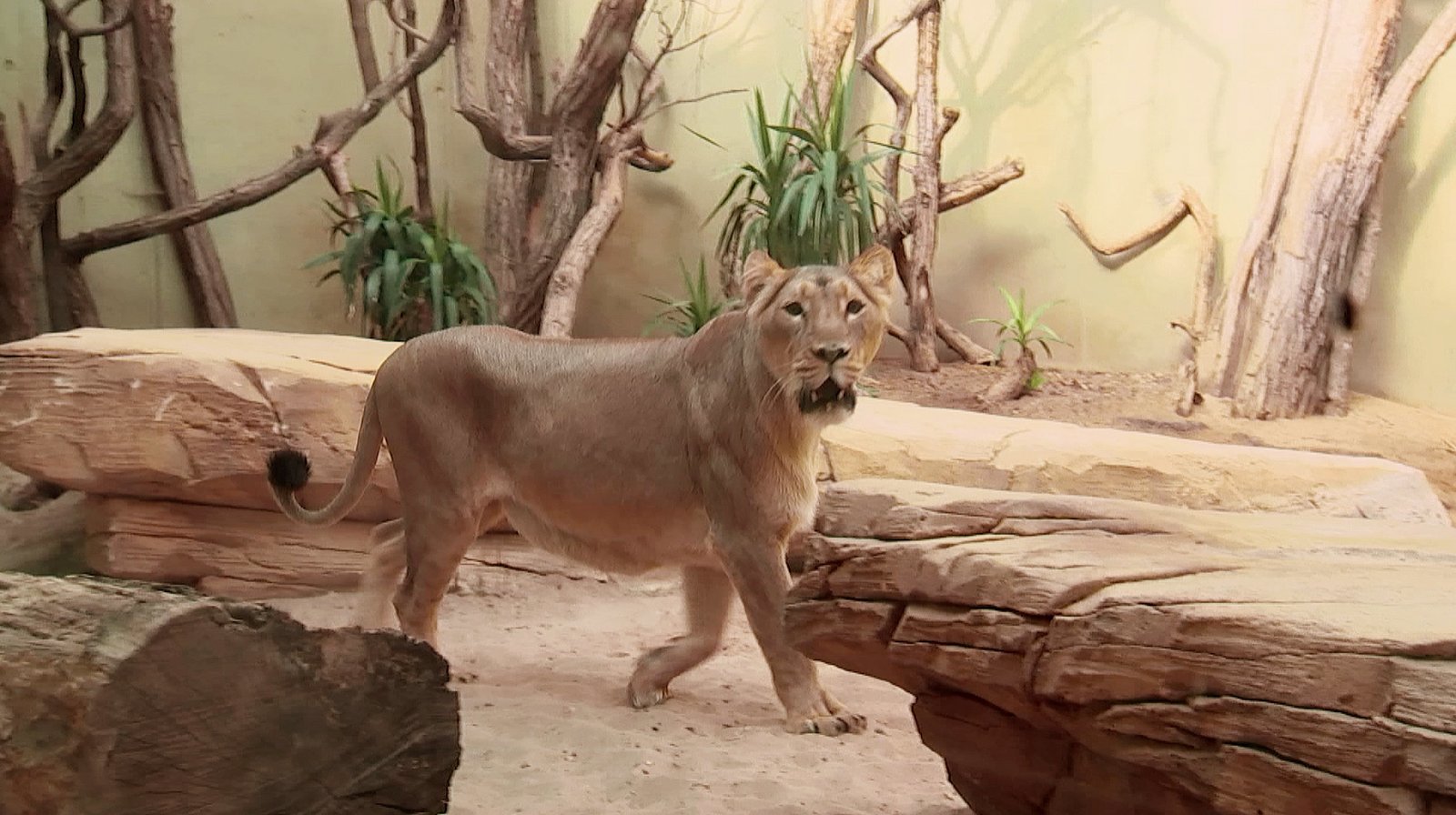 Giraffe Gregor auf dem Pfad der LiebeLöwin Zarina im Frankfurter Zoo freut sich auf ihren neuen Gefährten.Bild: © HR