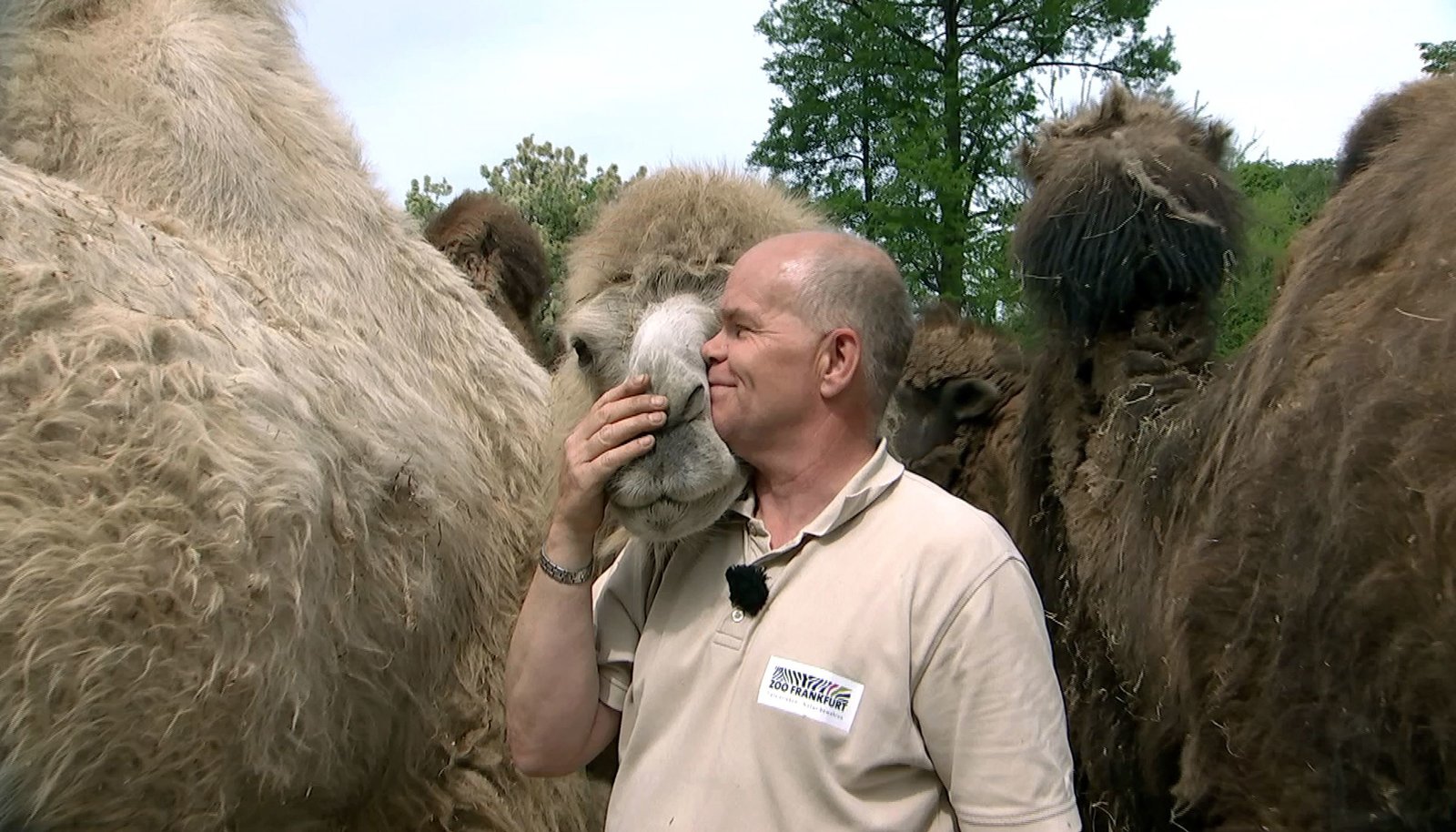 Öfter mal was NeuesPfleger Hans-Jürgen Kuchem bringt den Kamelen Abwechslung.Bild: © HR