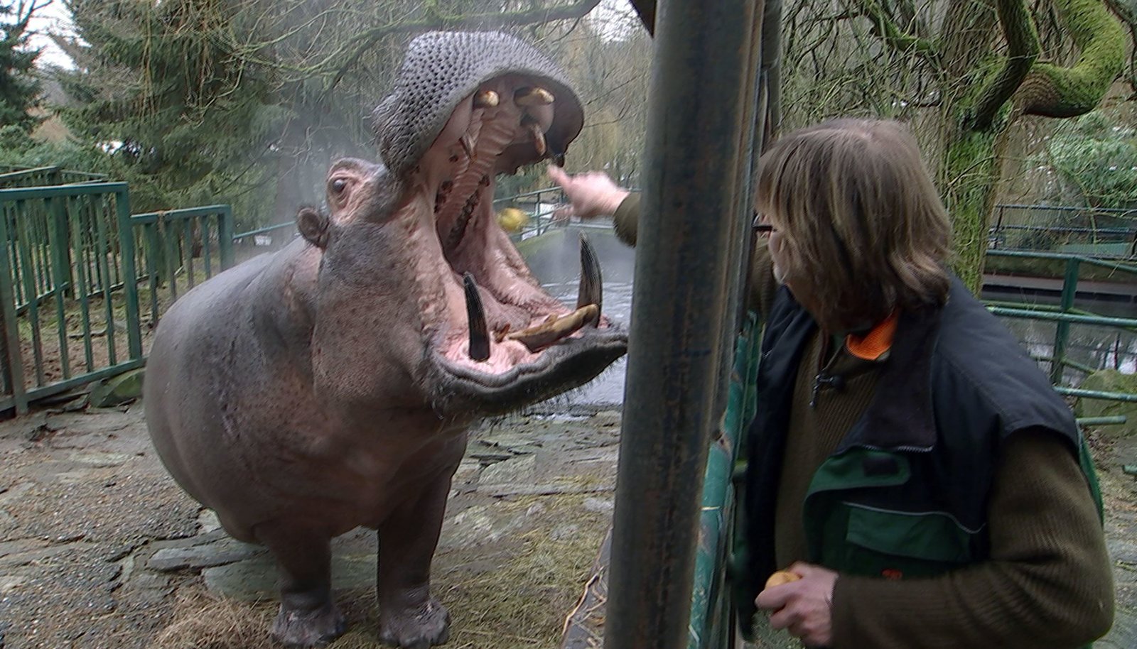 Zarina, die scheue LöwinFlusspferd Max bekommt Äpfel.Bild: © HR