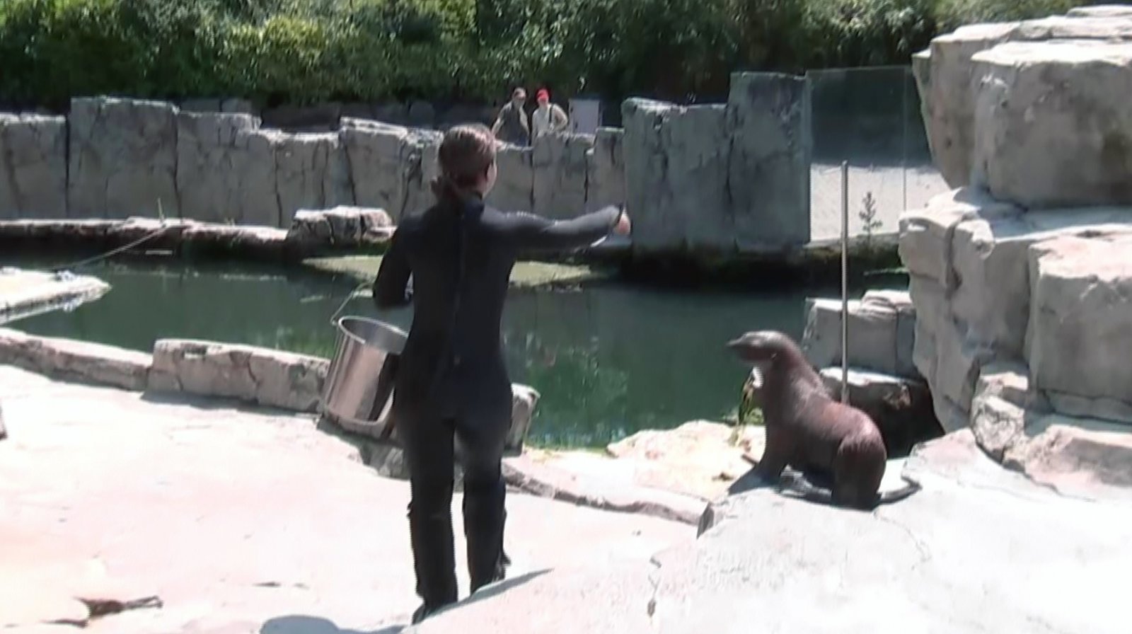 Wischen putzen saugen - alles für die SeebärenDie Seebären im Frankfurter Zoo dürfen wieder in ihr sauberes Becken.Bild: © HR
