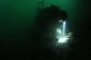 Kopf-an-Kopf-Rennen um GoldUnderwater dredging sillouette.Bild: © Discovery Channel