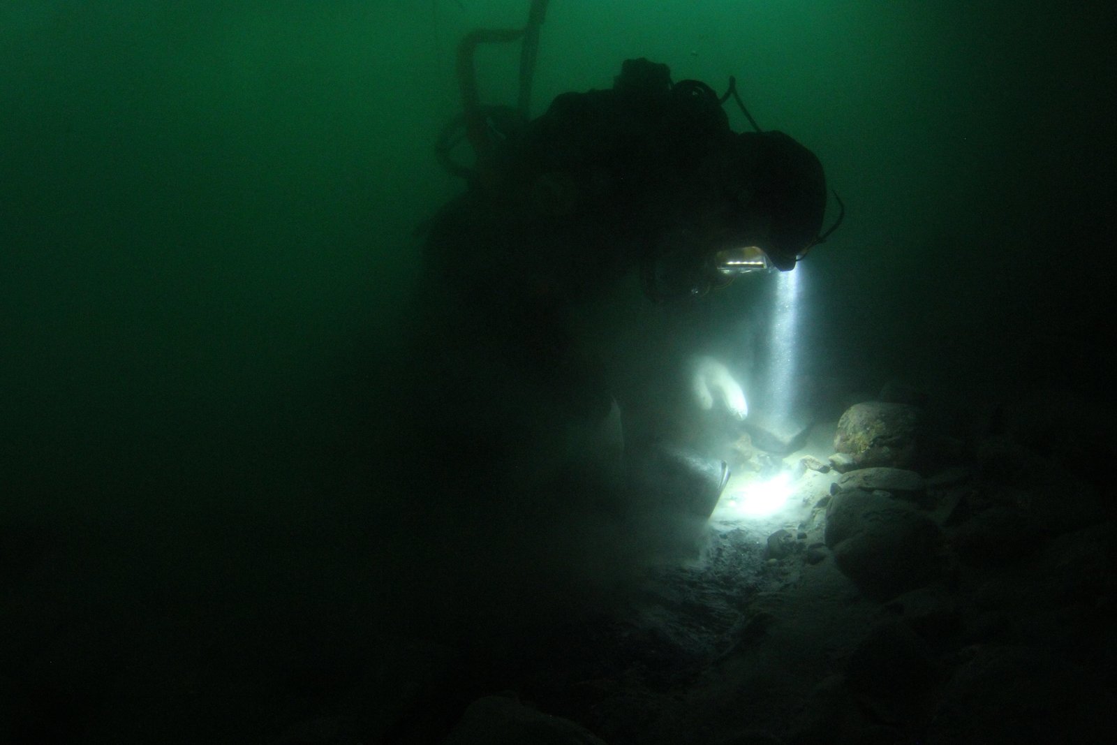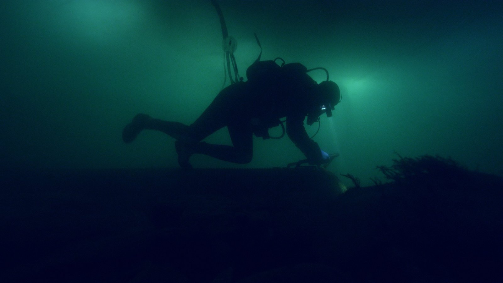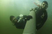 Steinschlag unter WasserDiver digs in murky water.Bild: © Discovery Communications