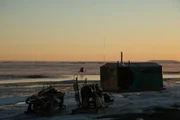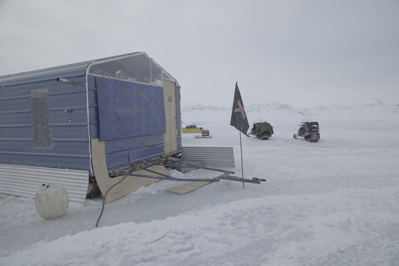 Vernons letzte ChanceExterior of the Wild Ranger Ice Station and the X flag that Shawn Pomrenke placed to mark a sweet spot on the claim.Bild: © Discovery Channel / Discovery Communications