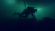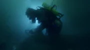 Gefahr in VerzugJuston Cook dredging underwater with light in background.Bild: © Discovery Communications