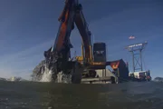 Der Bagger-UnfallThe Christine Rose raises one of its spud anchors.Bild: © Discovery Communications