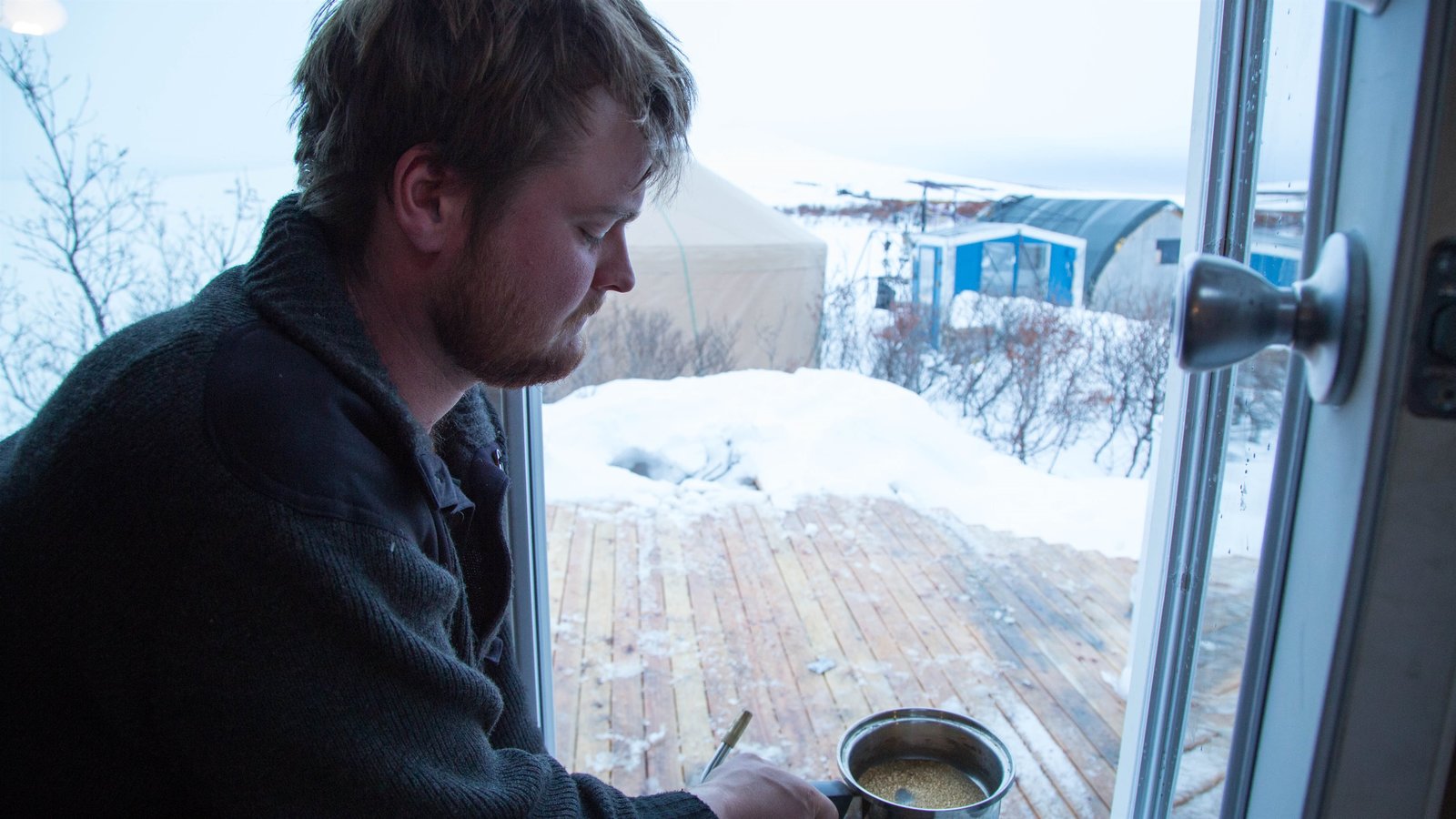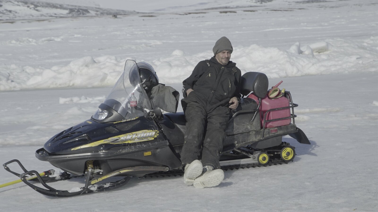 Emily traut sich endlichBrad Kelly enjoying the view from the safety of his snowmachine.Bild: © Discovery Channel / Discovery Communications