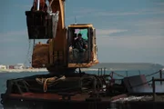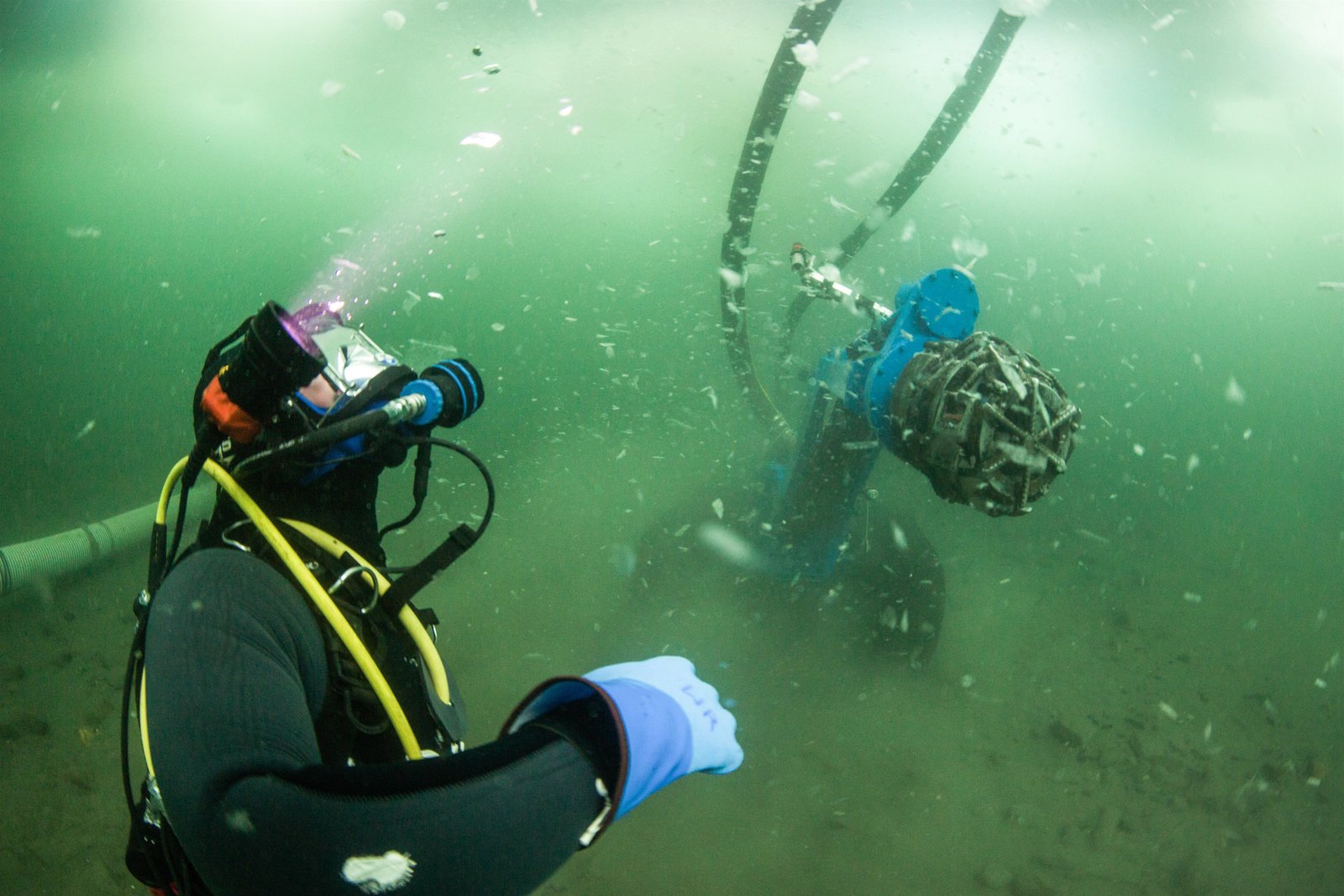 Drama um die Tauch-NovizenSub-dredge nozzle and diver underwater.Bild: © Discovery Communications