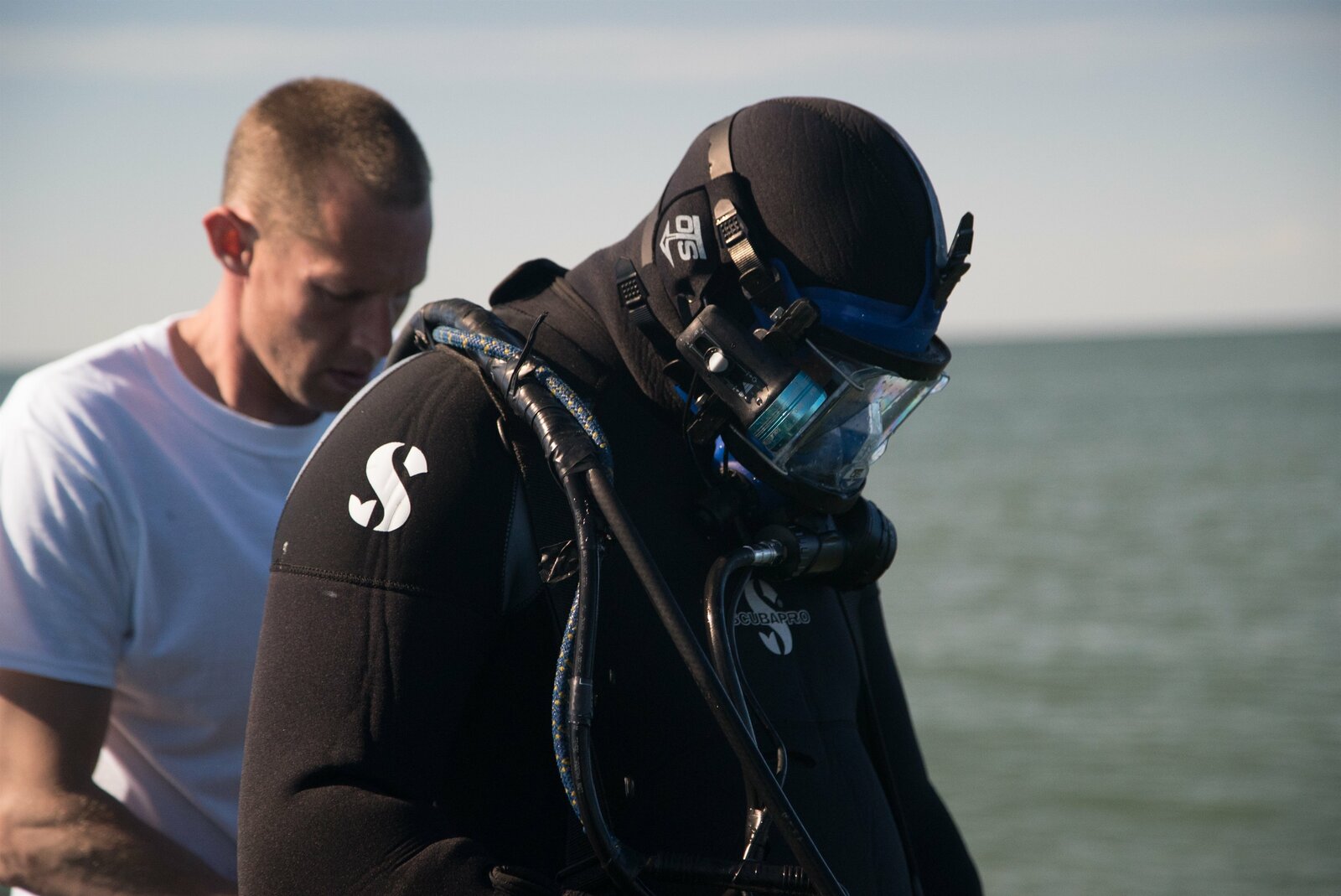 Meuterei auf der ReaperAndy Kelly helps Kris Kelly with his dive mask.Bild: © Discovery Channel / Discovery Communications