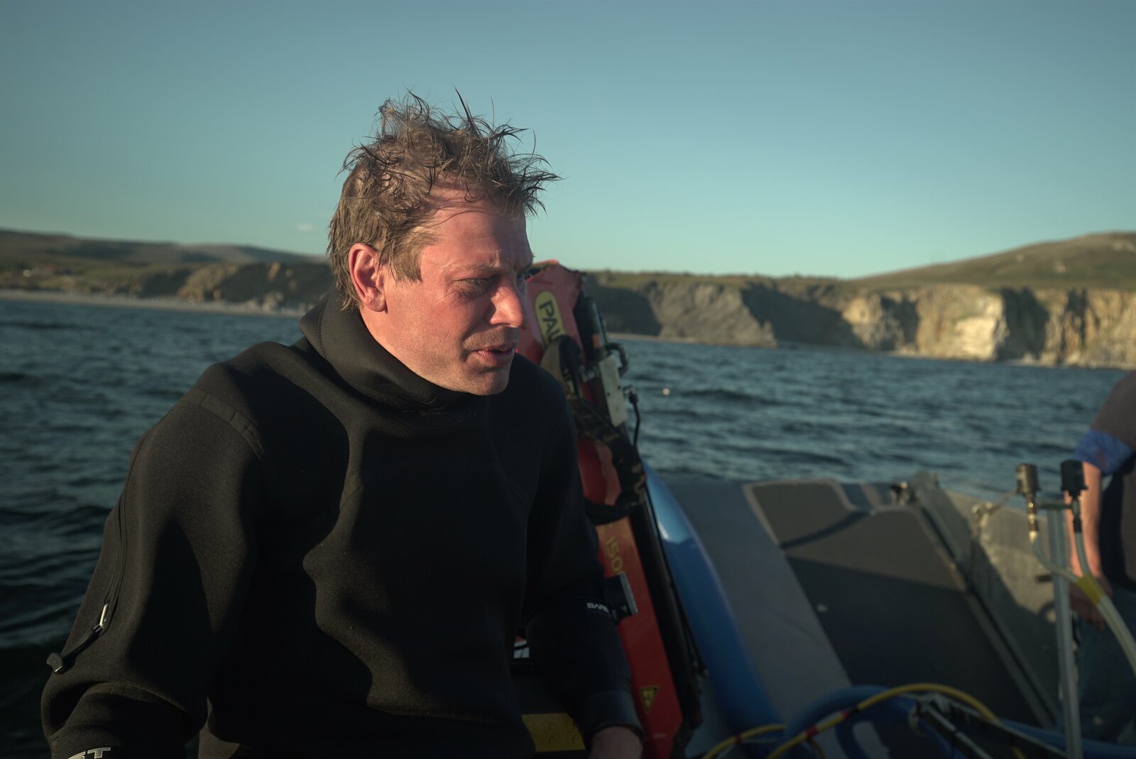 Start in eine kurze SaisonVernon Adkinson with a diver in the background.Bild: © Discovery Communications