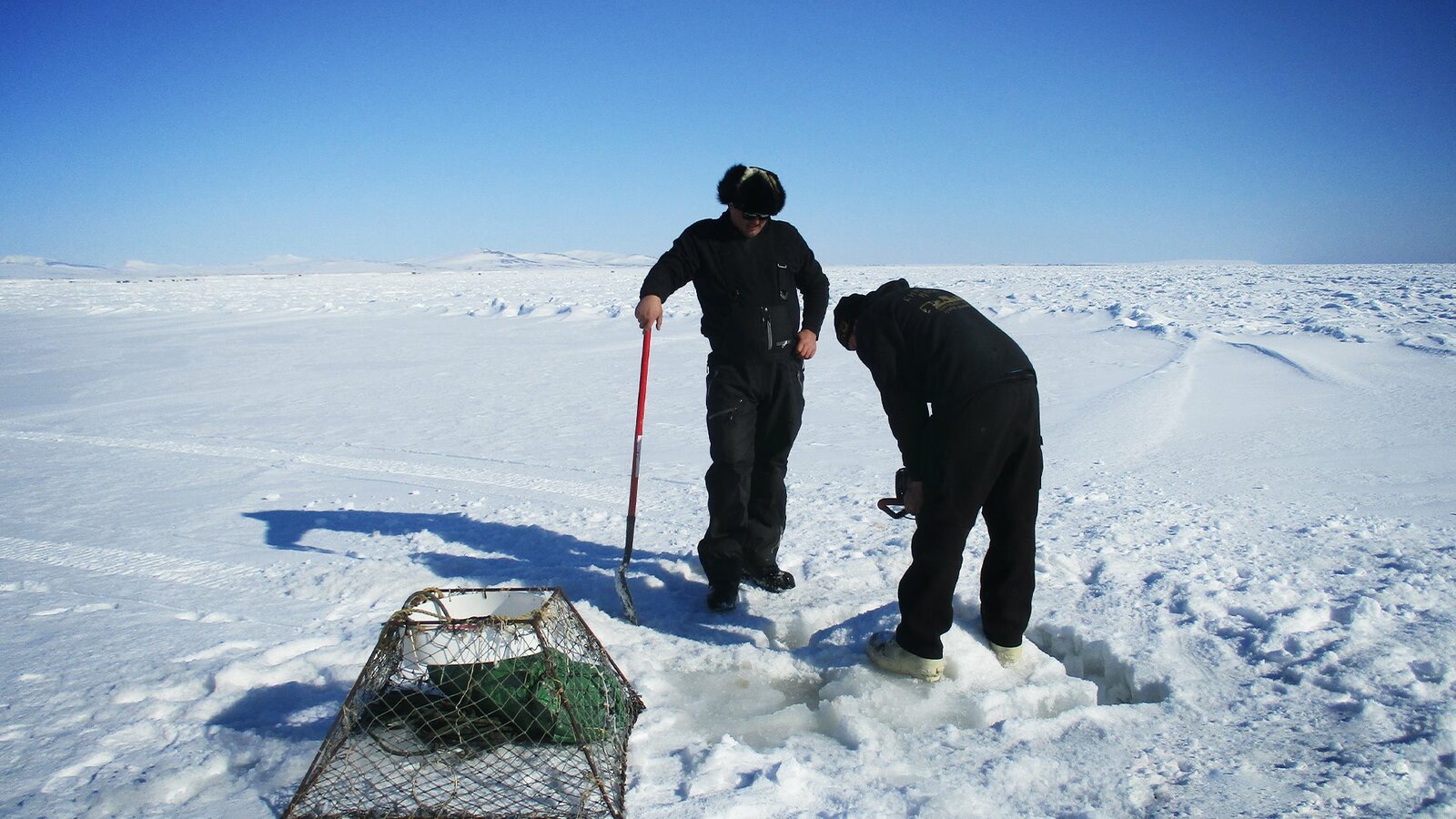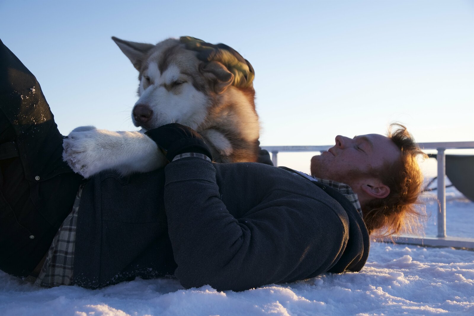 Rettung in letzter SekundeSam Tenhoff and Kiska hang out on the ice.Bild: © Discovery Channel