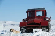 Die SucheRey the dog in front of a red track truck.Bild: © Discovery Communications
