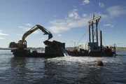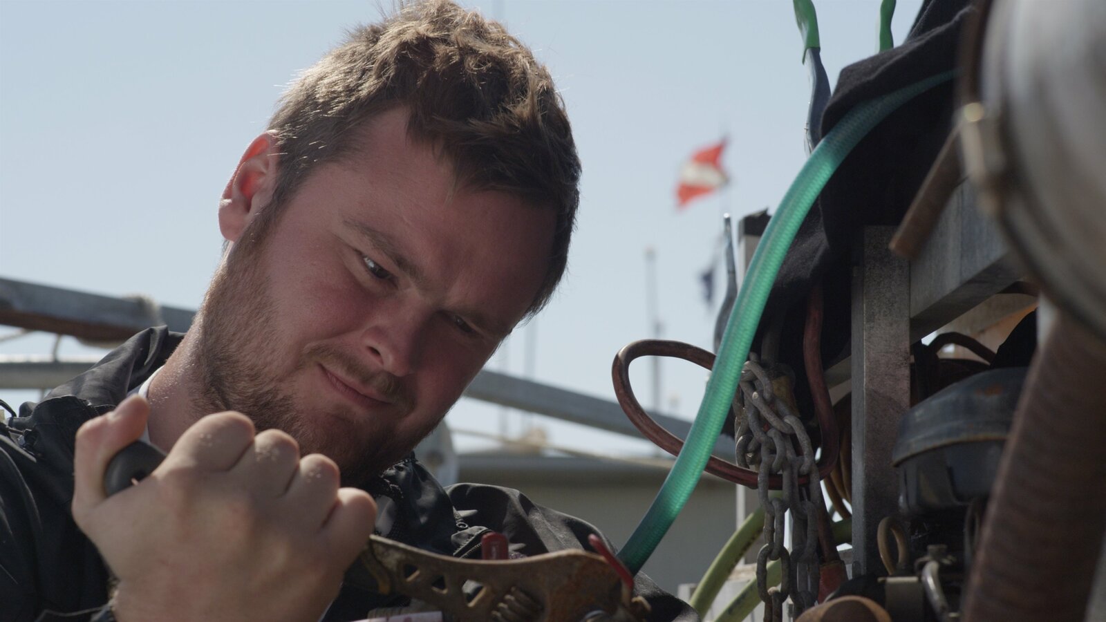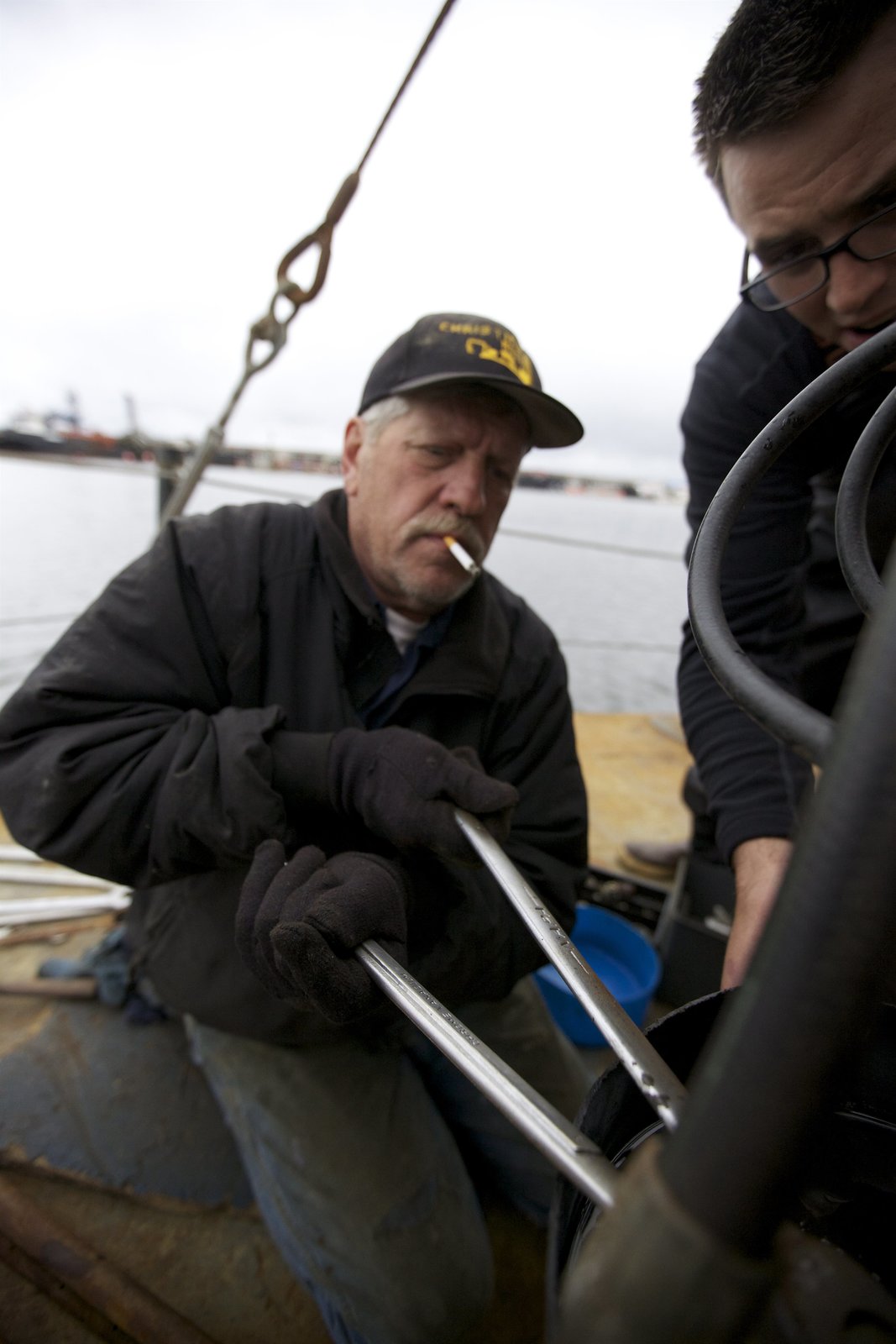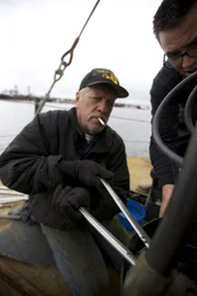 Der Bagger-UnfallCaptain Scott monitors greenhorn Steve Riedel as he drops anchor.Bild: © Discovery Communications