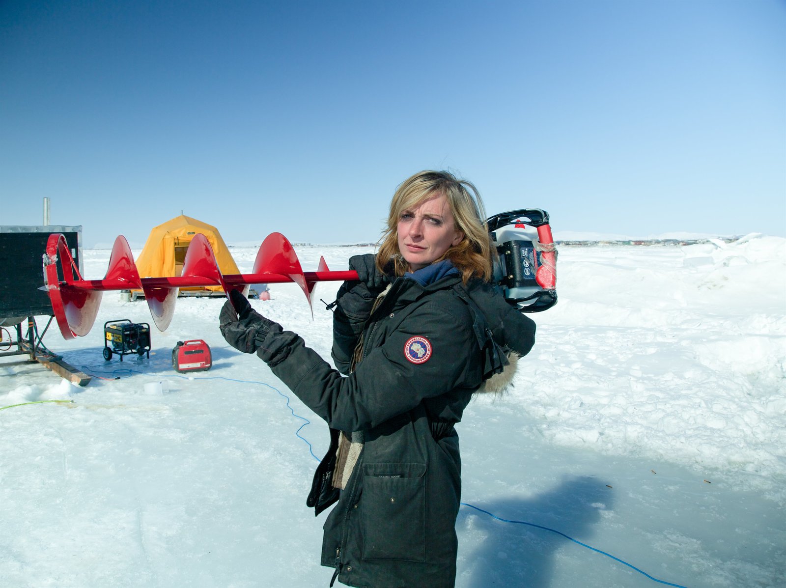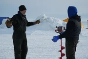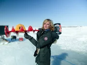 Drama um die Tauch-NovizenEmily Riedel with an ice auger.Bild: © Discovery Communications