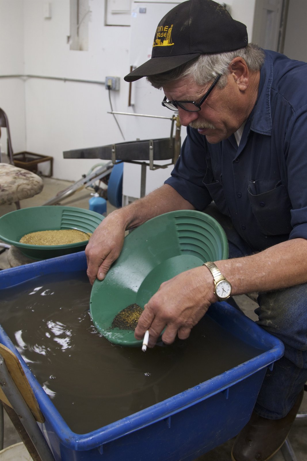 Mit dem Rücken zur WandSteve Pomrenke panning for gold.Bild: © Discovery Channel / Discovery Communications / Todd Stanley