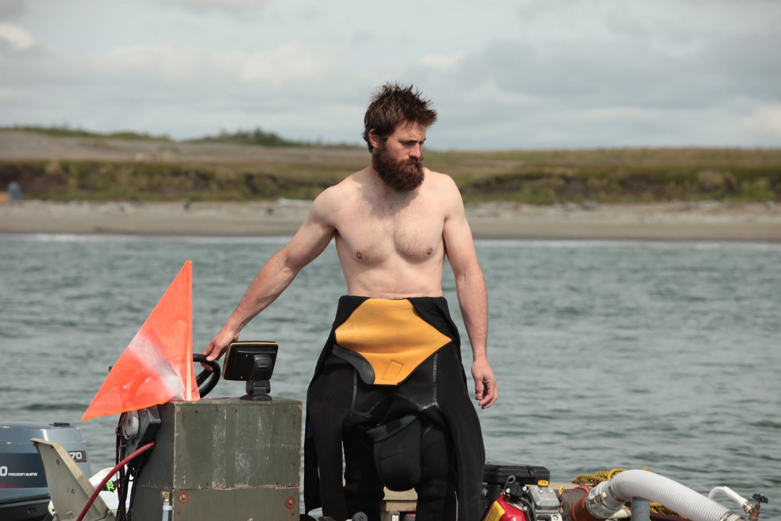 Vom Goldregen in die TraufeVernon Adkison putting on wetsuit gear.Bild: © Discovery Communications