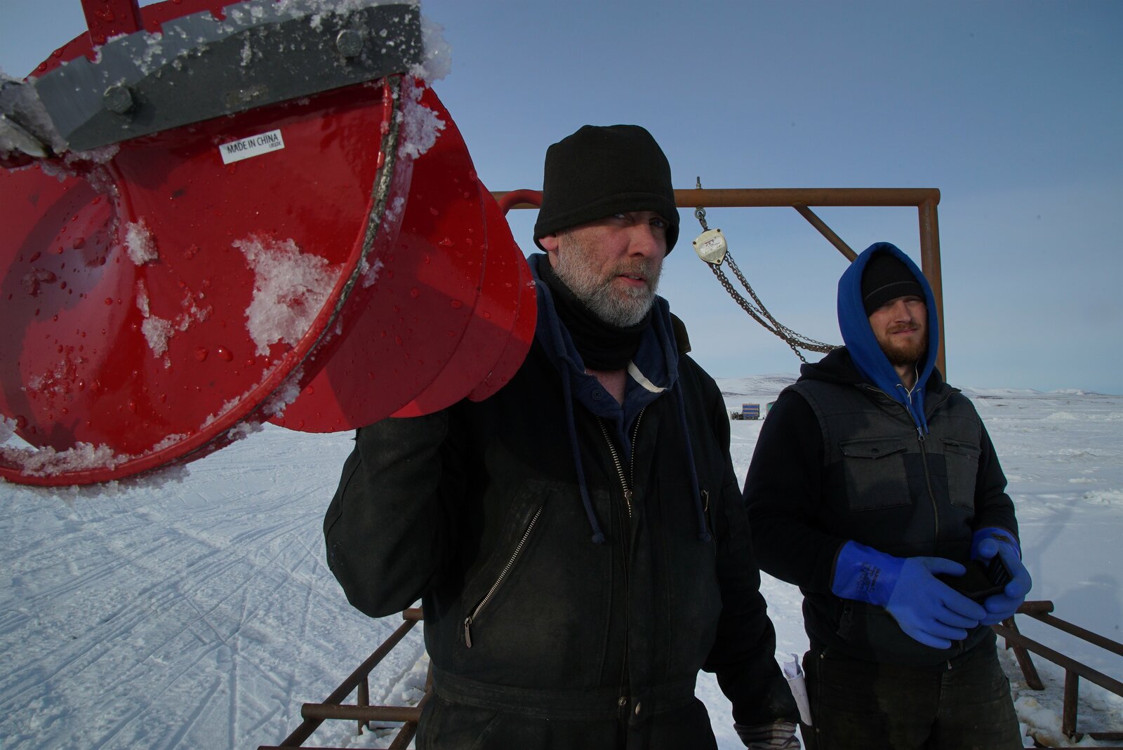 Der GoldflüstererJason Walker and Bobby Lowe ready to cut through the ice.Bild: © Discovery Channel