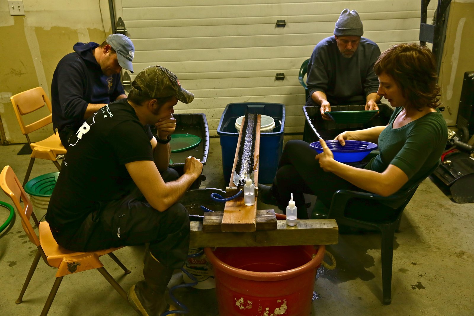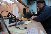 Shawn fährt die Ellbogen ausEroica Crew filtering gold in garage.Bild: © Copyright: Discovery Communications, Inc. For Show Promotion Only