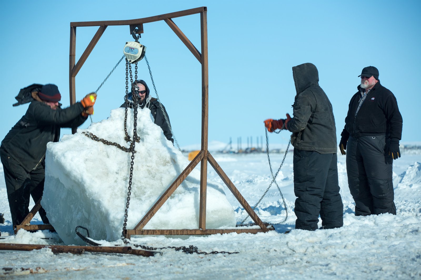 Start in eine kurze SaisonVernon Adkison and the Wild Ranger crew pull blocks of ice.Bild: © Discovery Communications / Tom Trainor