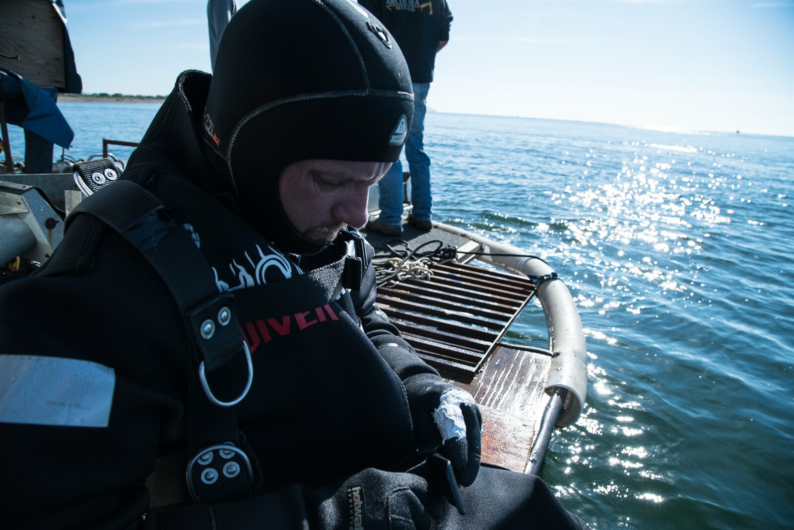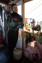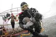 Meuterei auf der ReaperZeke Tenhoff suits up for a solo dive.Bild: © Discovery Channel / Discovery Communications