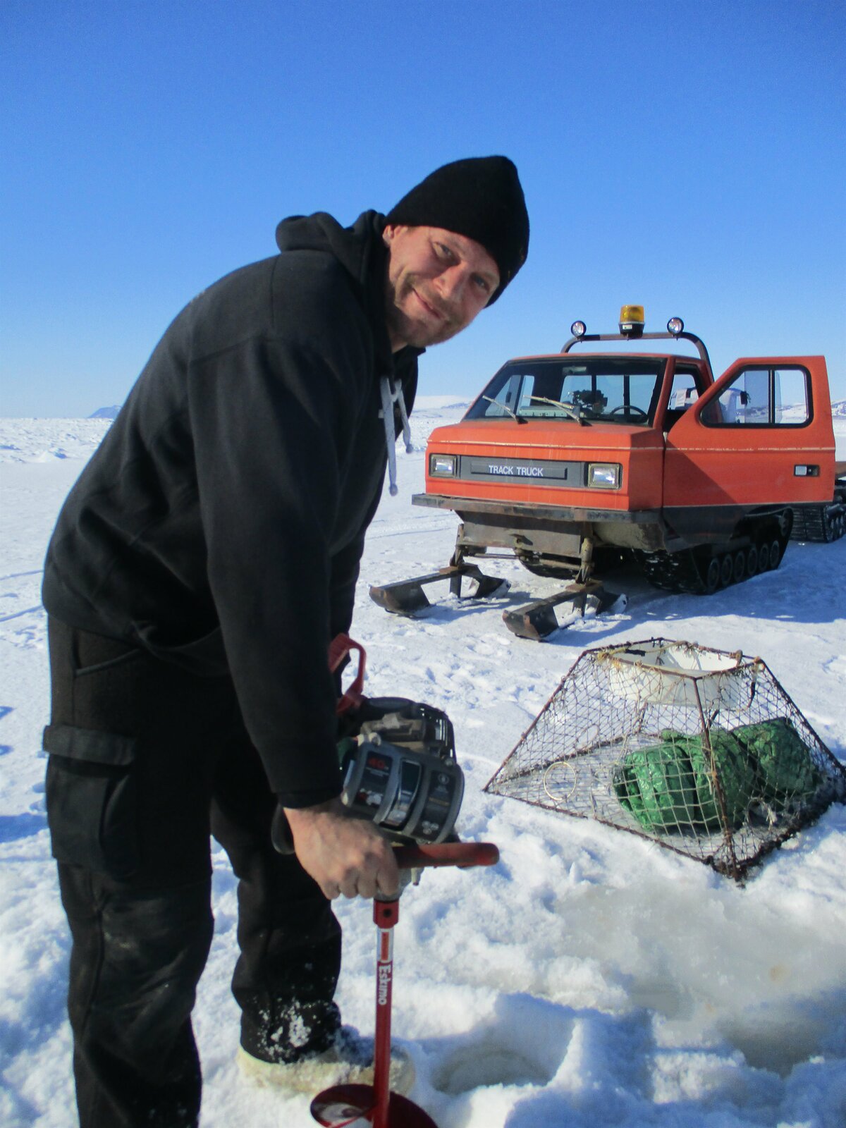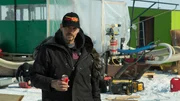 Vernons letzte ChanceShawn Pomrenke drills a hole in the ice to set a crab trap.Bild: © Discovery Channel / Discovery Communications