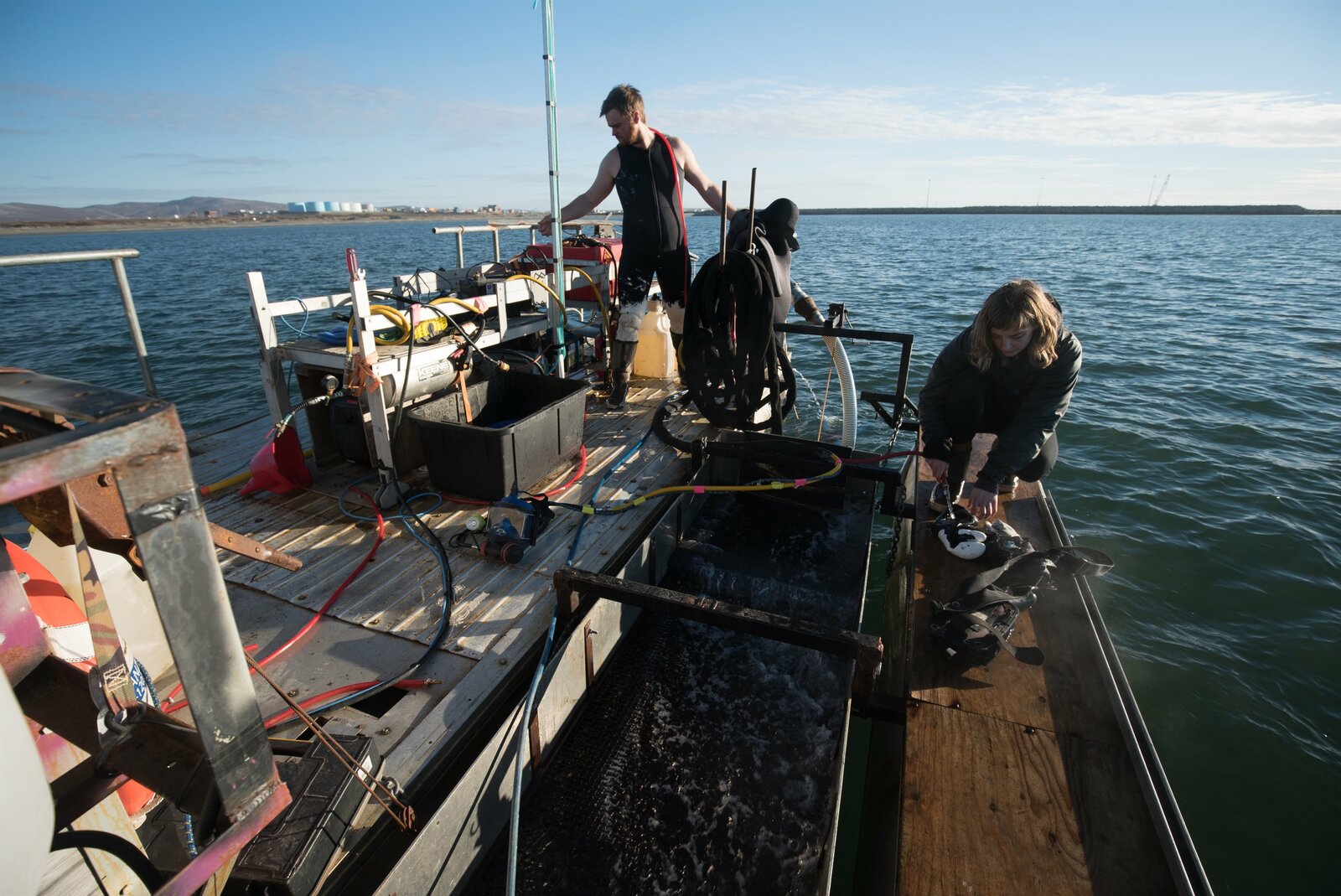 Blindflug unter WasserZeke Tenhoff and Emily Riedel prepare for a day of dredging.Bild: © Discovery Channel / Discovery Communications