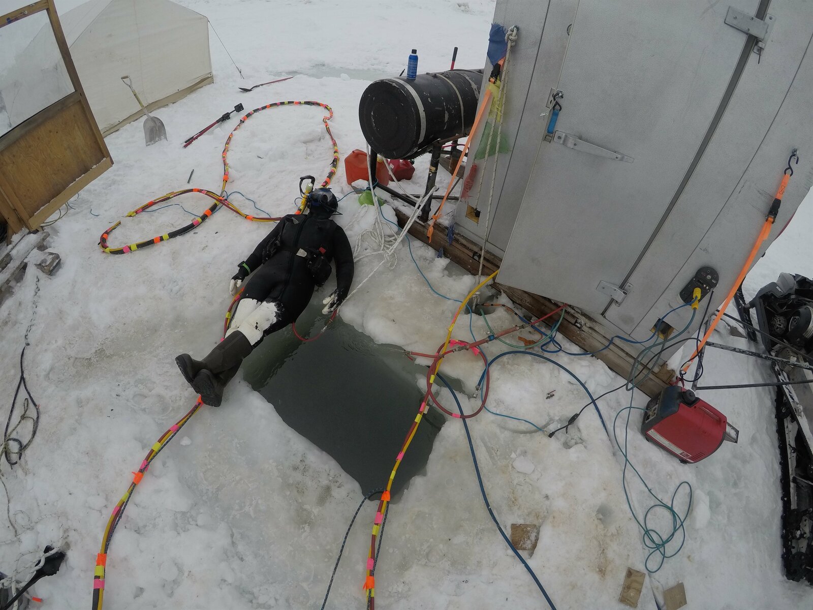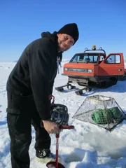 Start in eine kurze SaisonA Wild Ranger dive hole inside of an ice shack.Bild: © Discovery Communications / Tom Trainor