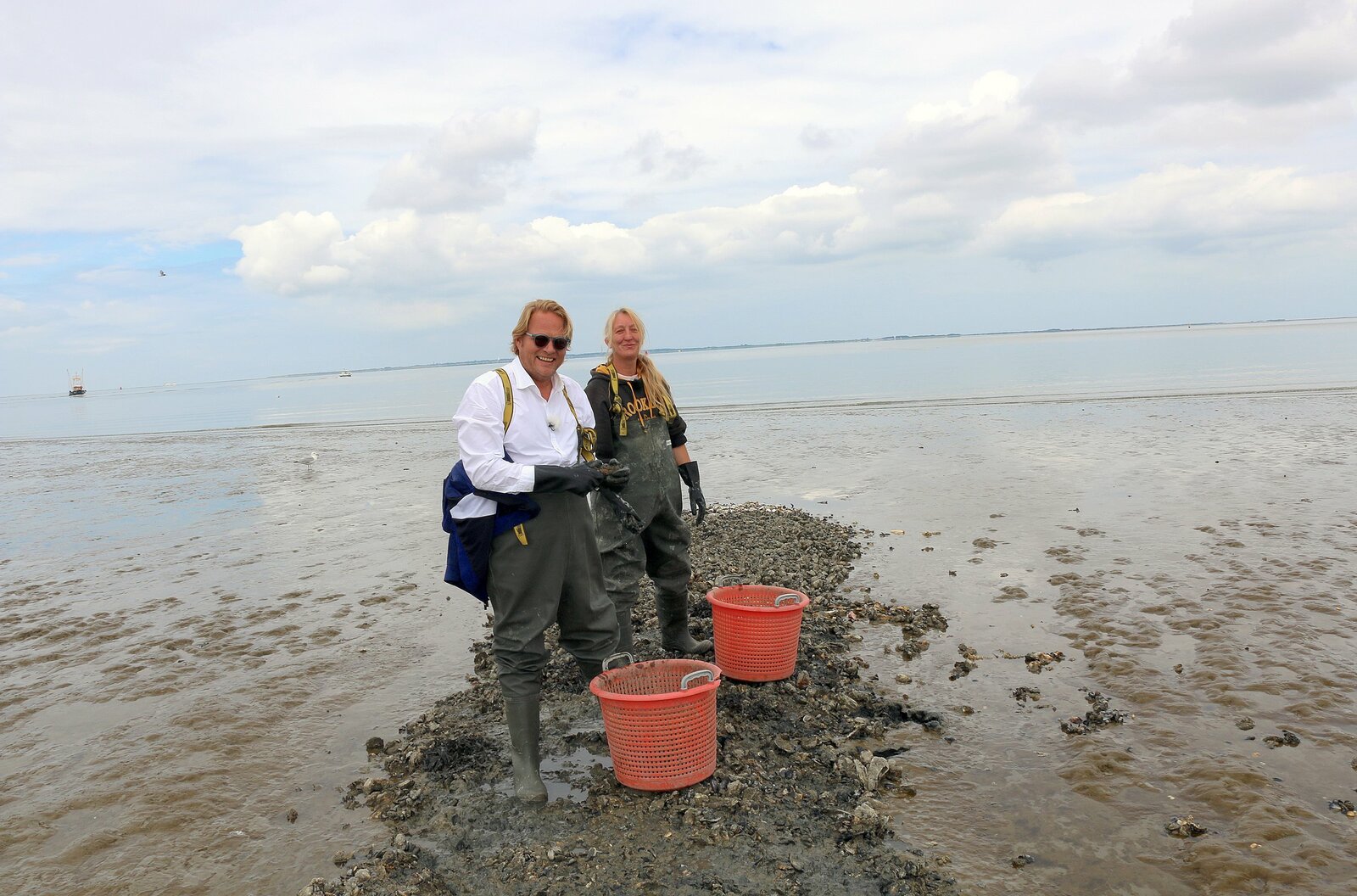 GroningenBjörn Freitag (l) mit Austernfischerin Barbara Rodenburg-Geertsema in Lauwersoog, Niederlande.Bild: © WDR/2bild GmbH/Anja Tanas