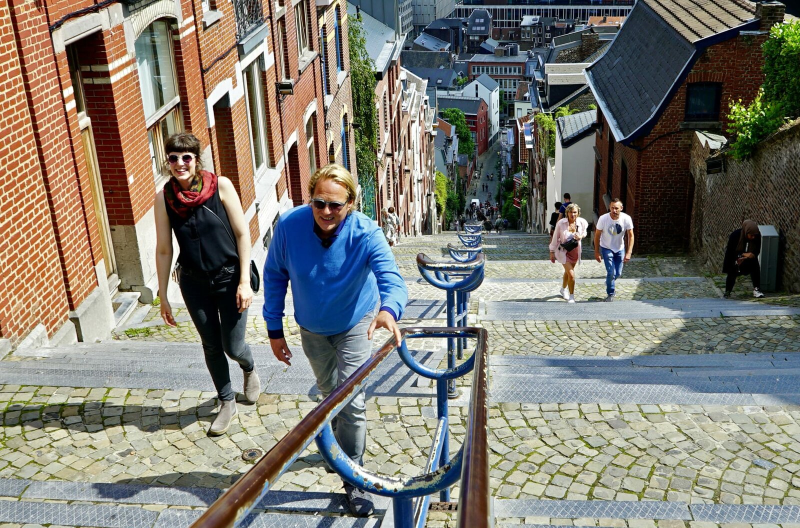 Lüttich - wallonische Stadt an der MaasBjörn Freitag (r) mit Jenny Rode beim Aufstieg der „Montagne de Bueren“ – 374 Treppenstufen.Bild: © WDR/2bild GmbH/Sophie M. Neuer