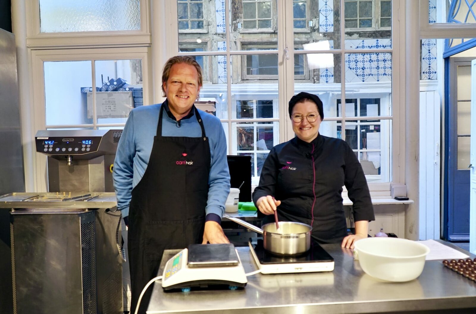 Lüttich - wallonische Stadt an der MaasBjörn Freitag mit Schokoladen-Herstellerin Melanie Lemmens (r) in Ihrem Laden „Carré Noir“.Bild: © WDR/2bild GmbH/Sophie M. Neuer