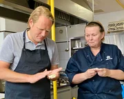 Kiel und die FördeBjörn Freitag (l) mit Flygge Koch Mathias Apelt.Bild: © WDR/2bild GmbH/Kinga Janur