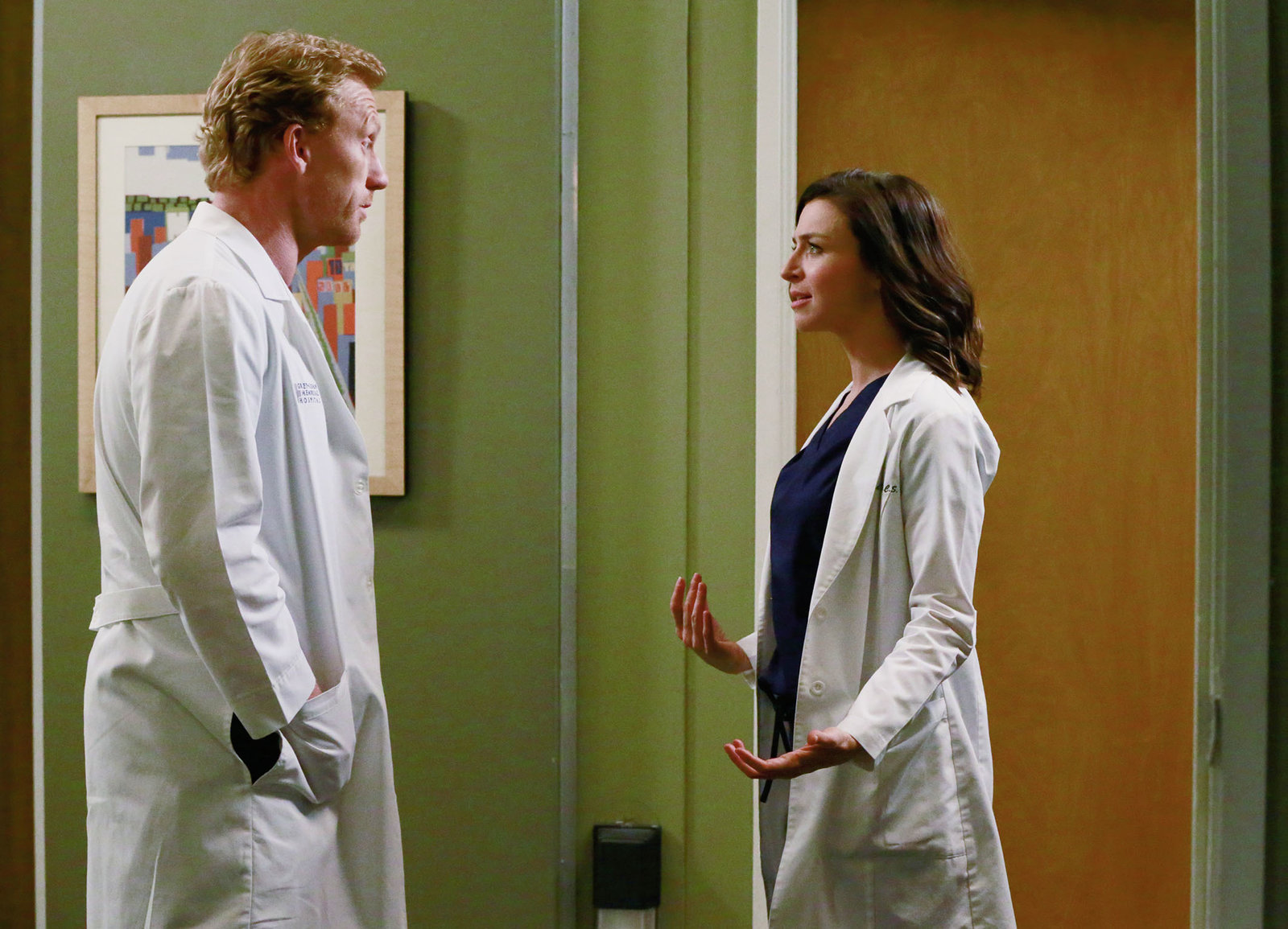 Last der ErinnerungDiskussion unter Liebenden: Kevin McKidd als Dr. Owen Hunt, Caterina Scorsone als Dr. Amelia ShepherdBild: © Copyright SRF/ ABC Studios