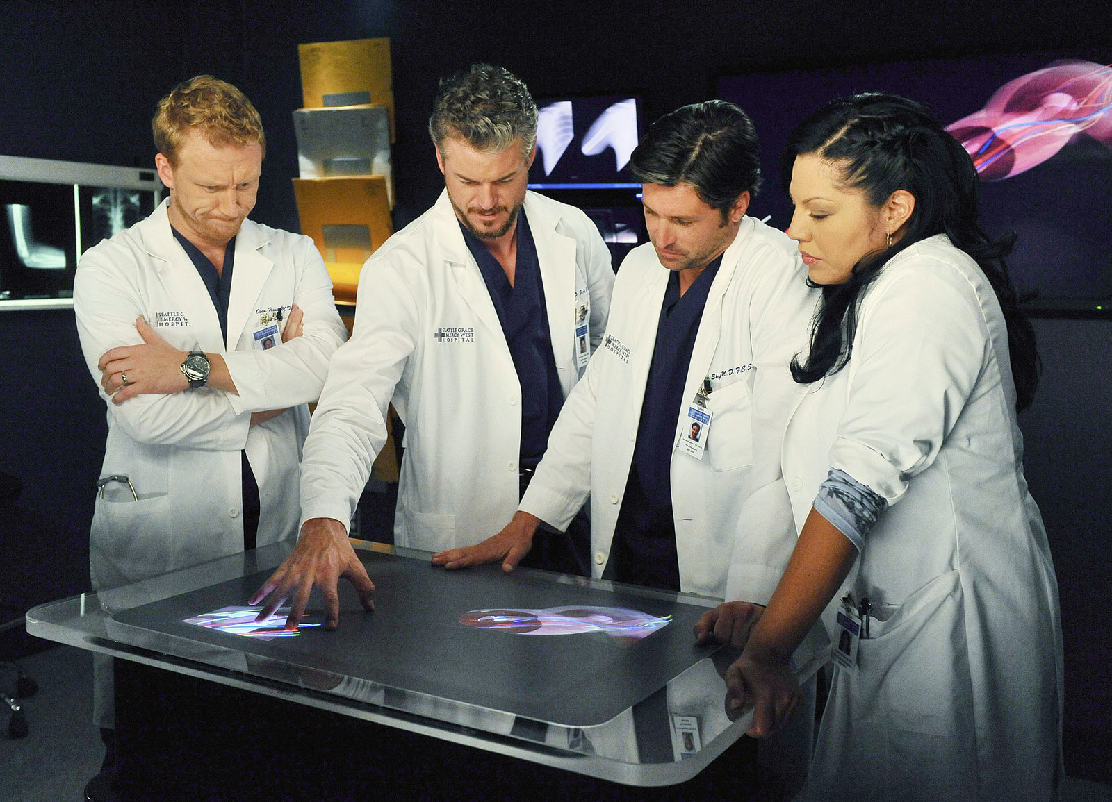 Seattle MedicalVorbereitung einer doppelten Transplantation: Kevin McKidd als Dr. Owen Hunt, Eric Dane als Dr. Mark Sloan, Patrick Dempsey als Dr. Derek Shepherd, Sara Ramirez als Dr. Calliope «Callie» TorresBild: © SRF/ABC Studios