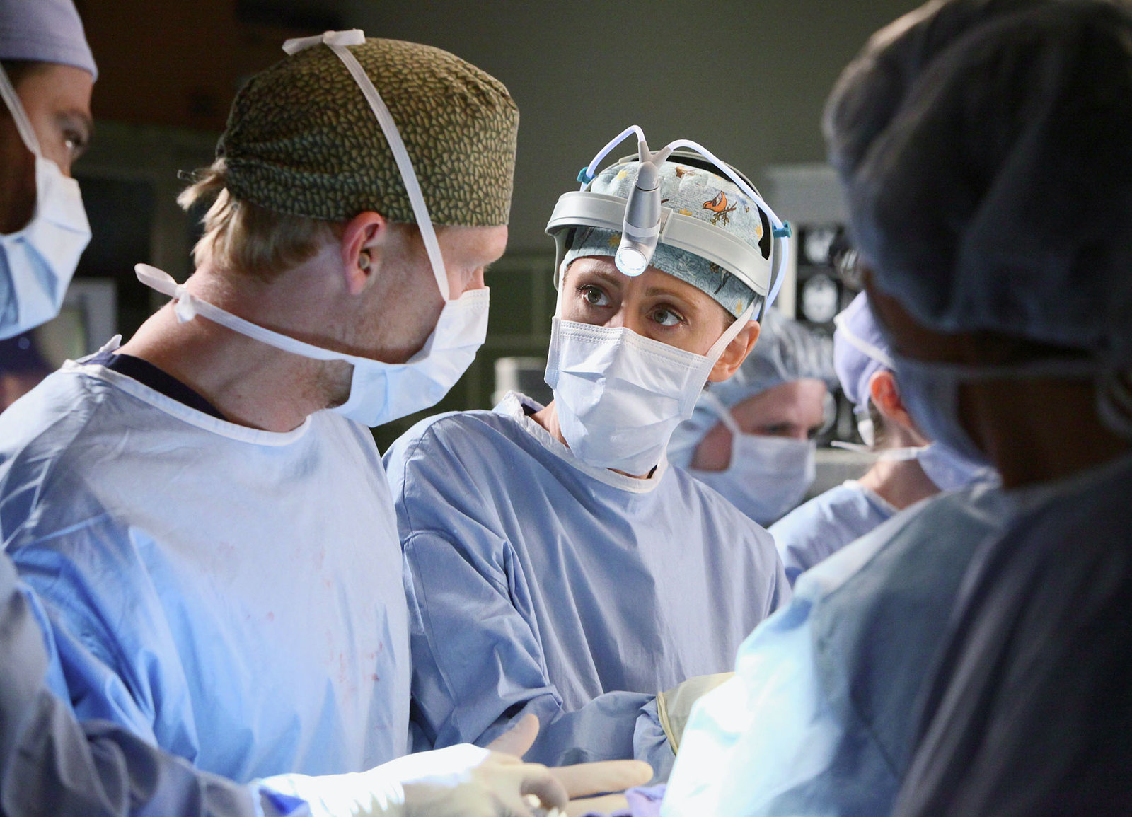 RückkehrVerfolgen eine schwierige Operation: Peter MacNicol als Dr. Robert Stark, Chandra Wilson als Dr. Miranda Bailey, Ellen Pompeo als Dr. Meredith Grey, Patrick Dempsey als Dr. Derek Shepherd, James Pickens Jr. als Dr. Richard Webber, Jesse Williams als Jackson Avery, Sarah Drew als April Kepner, Justin Chambers als Dr. Alex Karev, Chyler Leigh als Lexie Grey, Sara Ramirez als Dr. Calliope «Callie» TorresBild: © SRF/ABC Studios