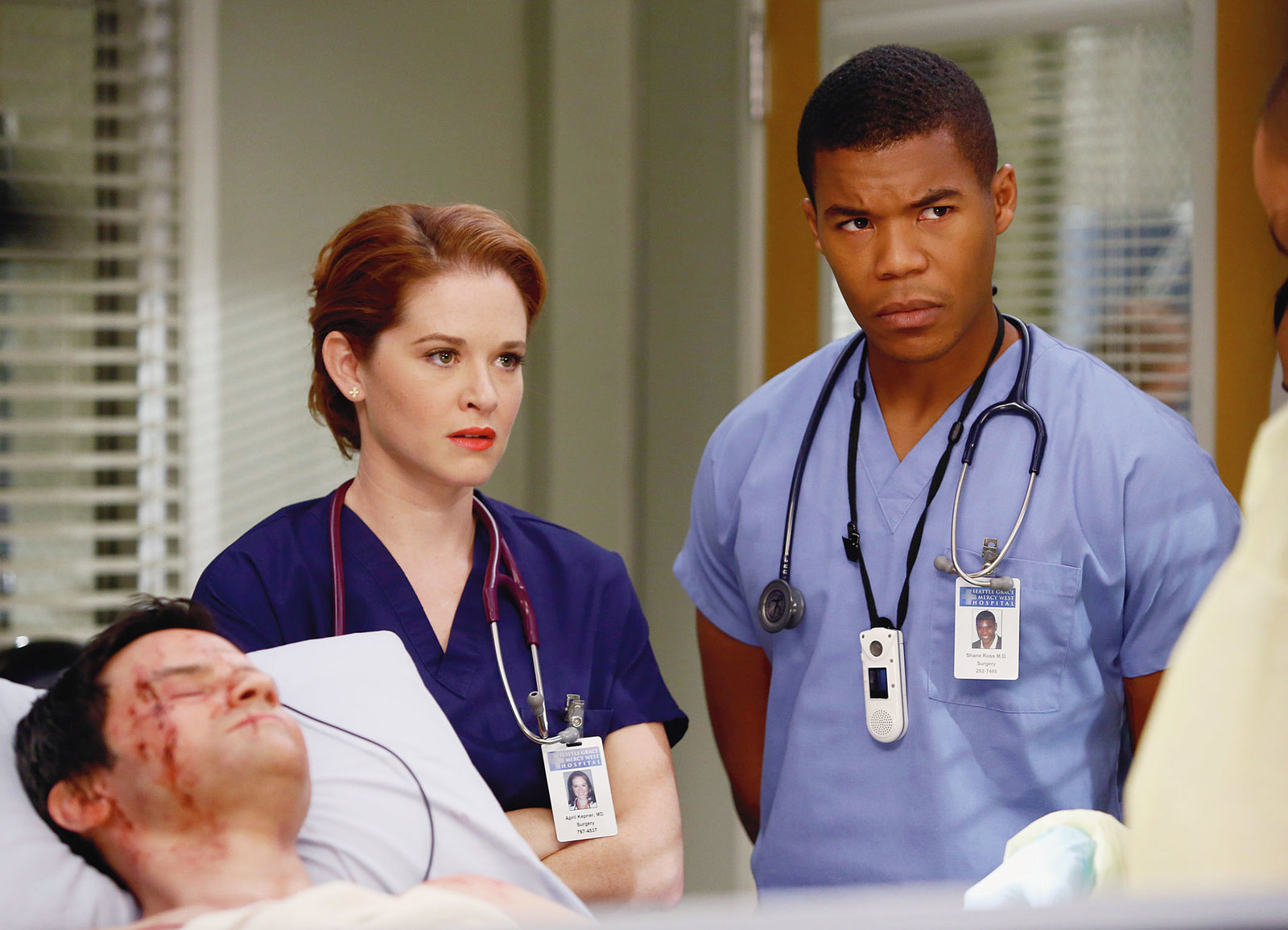 Der Kreis schließt sichBesorgtes Team: Sarah Drew als Dr. April Kepner (M.), Gaius Charles als Dr. Shane Ross (r.)Bild: © SRF/ ABC Studios