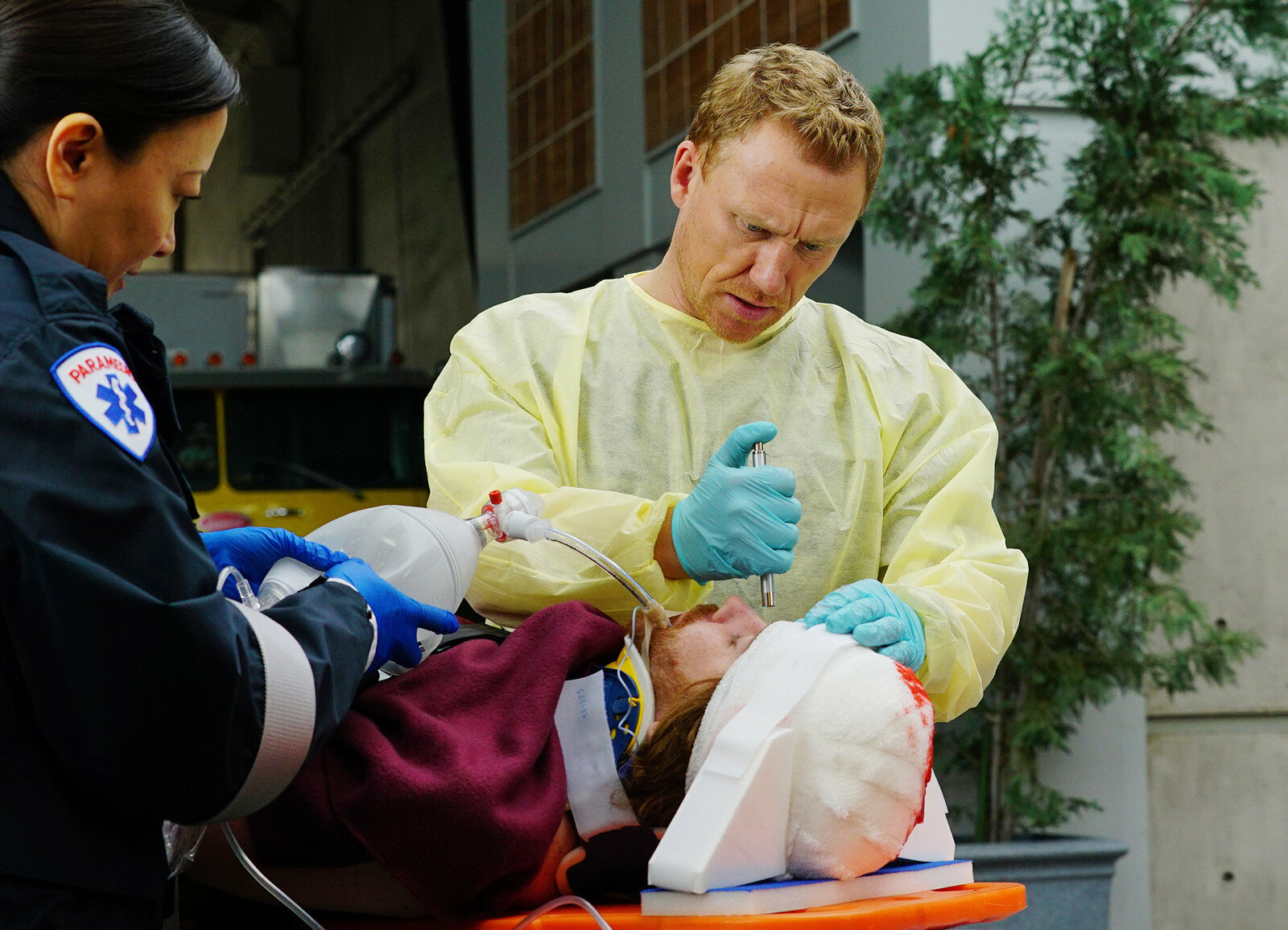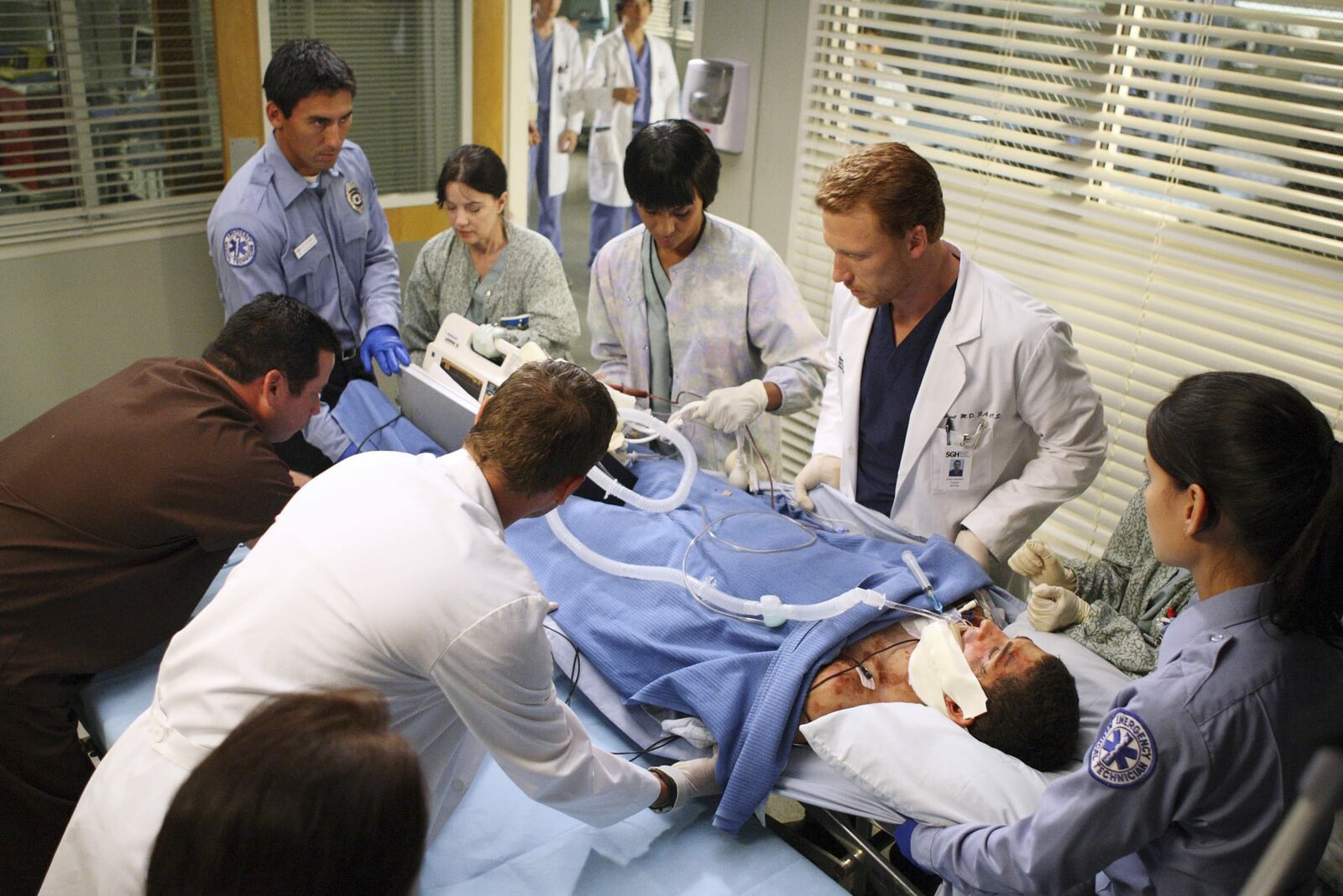 ParanoiaEin Notfall: Owen (Kevin McKidd, 2.v.r.) und seine Kollegen versuchen einem Patienten das Leben zu retten ...Bild: © c 2009 American Broadcasting Companies, Inc. All rights reserved. NO ARCHIVE. NO RESALE.