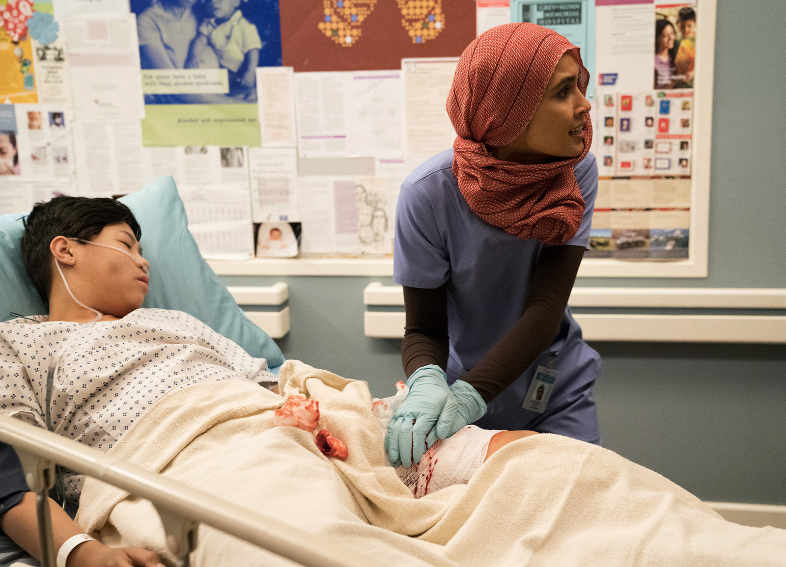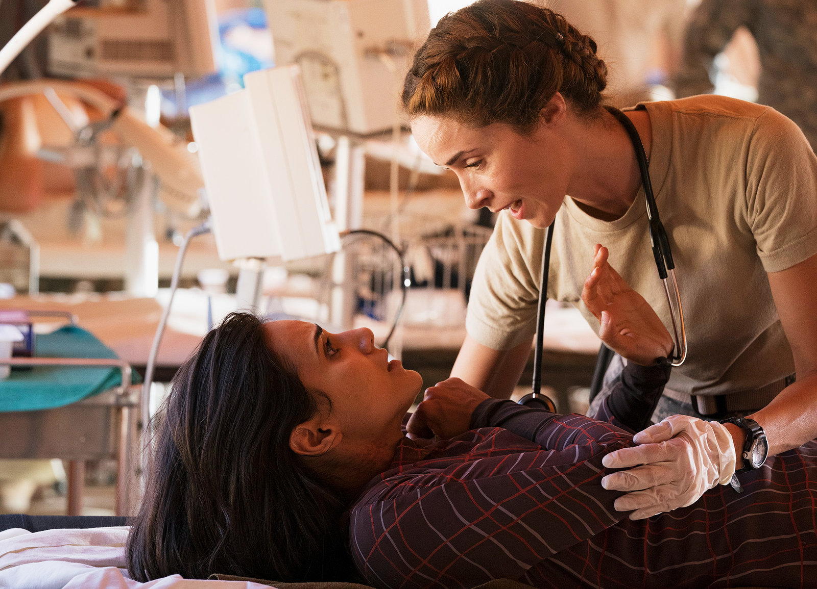 Anruf aus MadridVersucht, die Blutung zu stoppen: Sophia Ali als Dr. Dahlia Qadri (r.)Bild: © SRF / ABC Studios