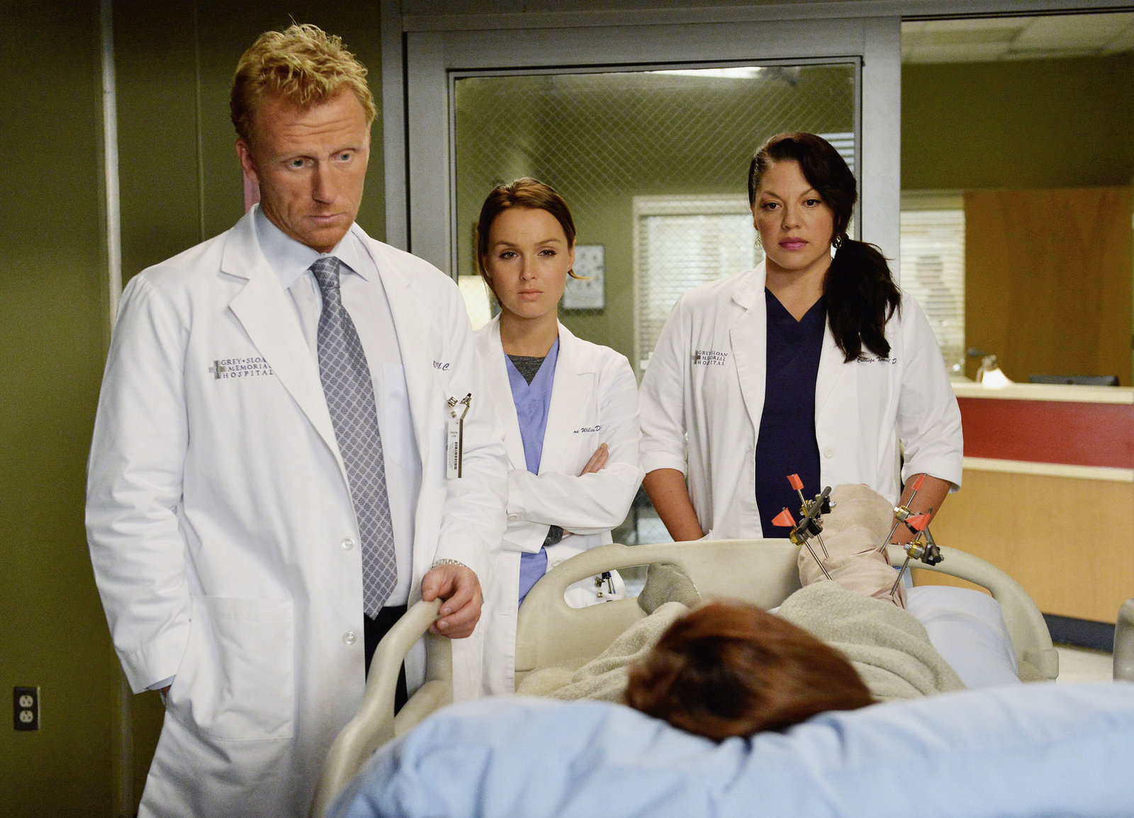FamilienzusammenführungÄrzteteam: Kevin McKidd als Dr. Owen Hunt, Camilla Luddington als Dr. Jo Wilson, Sara Ramirez als Dr. Callie TorresBild: © SRF/ ABC Studios