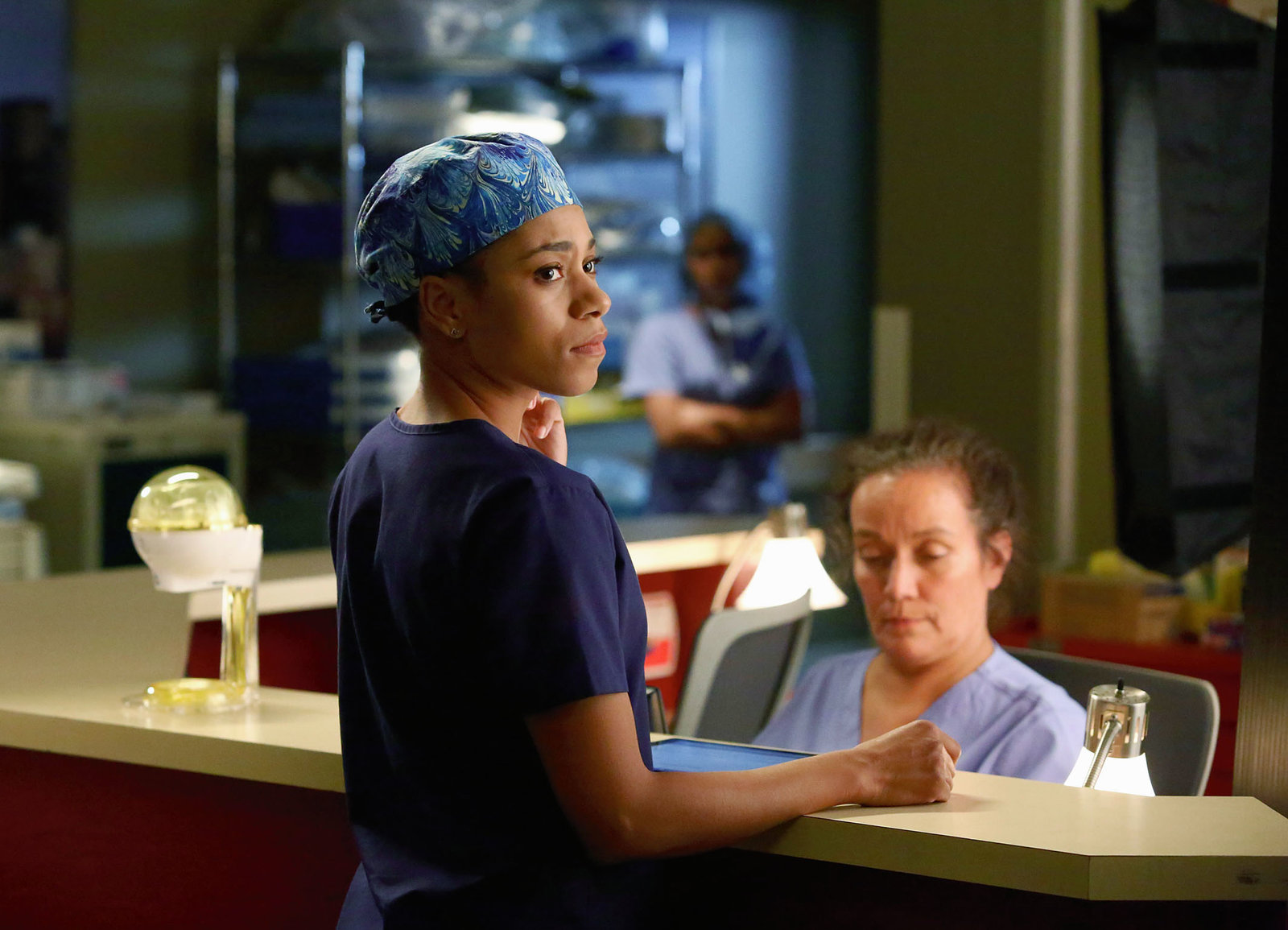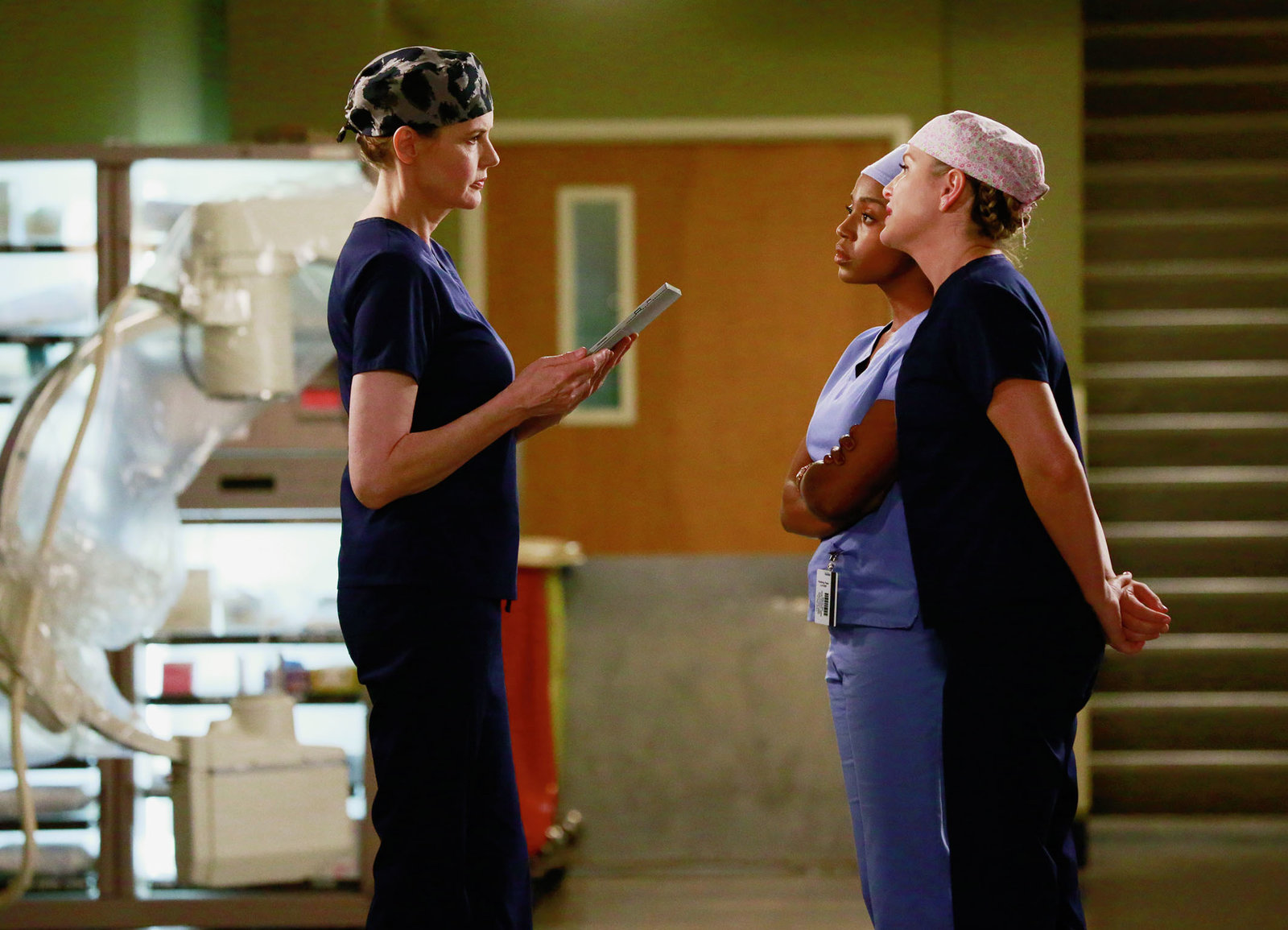 RisikoInstruktion von zwei Ärztinnen: Geena Davis als Dr. Nicole Herman, Jerrika Hinton als Dr. Stephanie Edwards, Jessica Capshaw als Dr. Arizona RobbinsBild: © SRF/ ABC Studios