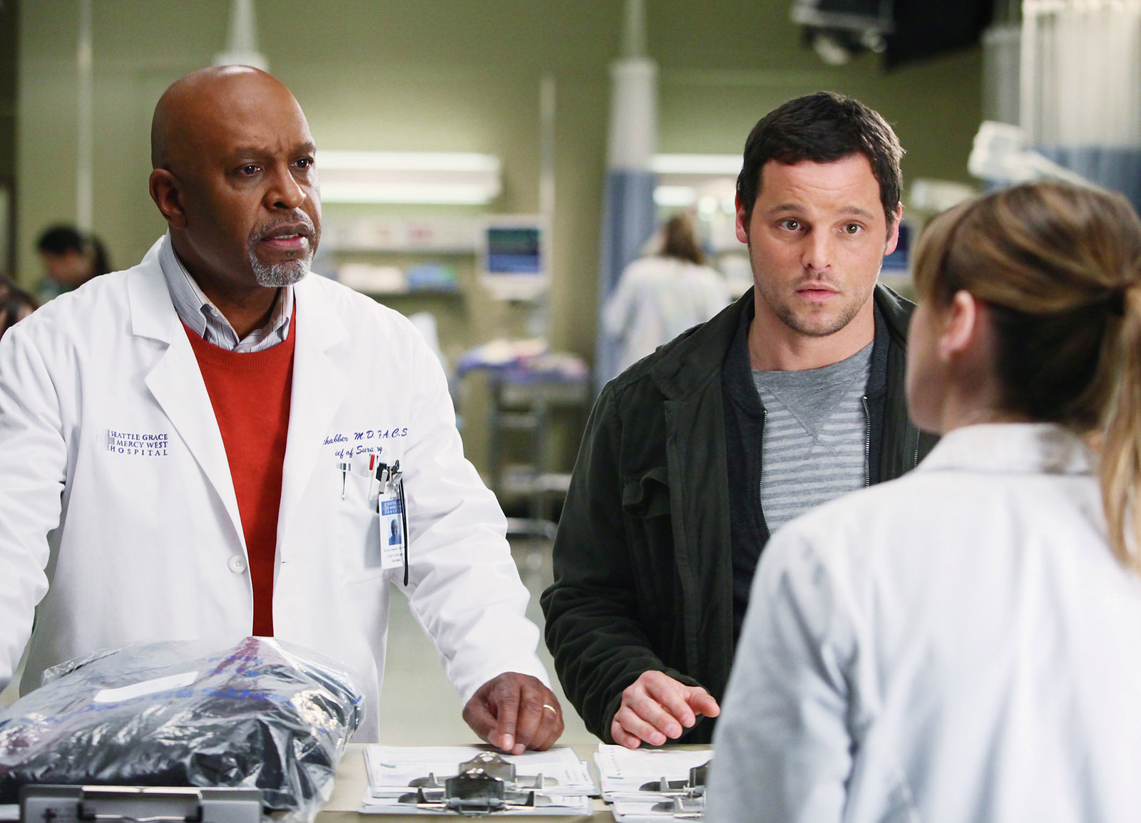 Die goldene StundeVerärgerter Chef: James Pickens Jr. als Dr. Richard Webber, Justin Chambers als Dr. Alex Karev, Ellen Pompeo als Dr. Meredith GreyBild: © SRF/ABC Studios