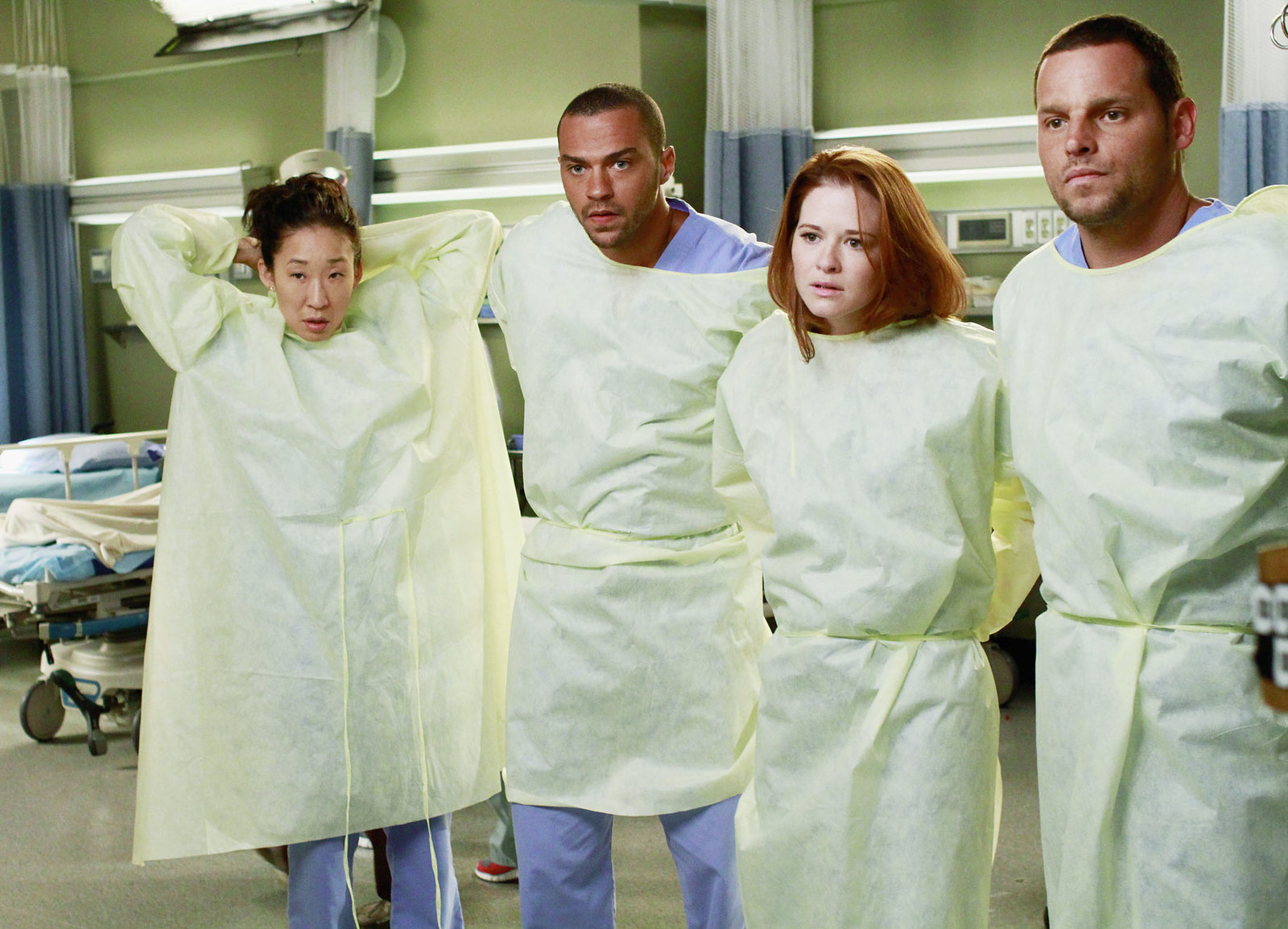 KurzschlussentscheidungEinsatzbereit: Sandra Oh als Dr. Christina Yang, Jesse Williams als Dr. Jackson Avery, Sarah Drew als Dr. April Kepner, Justin Chambers als Dr. Alex KarevBild: © SRF/ABC Studios