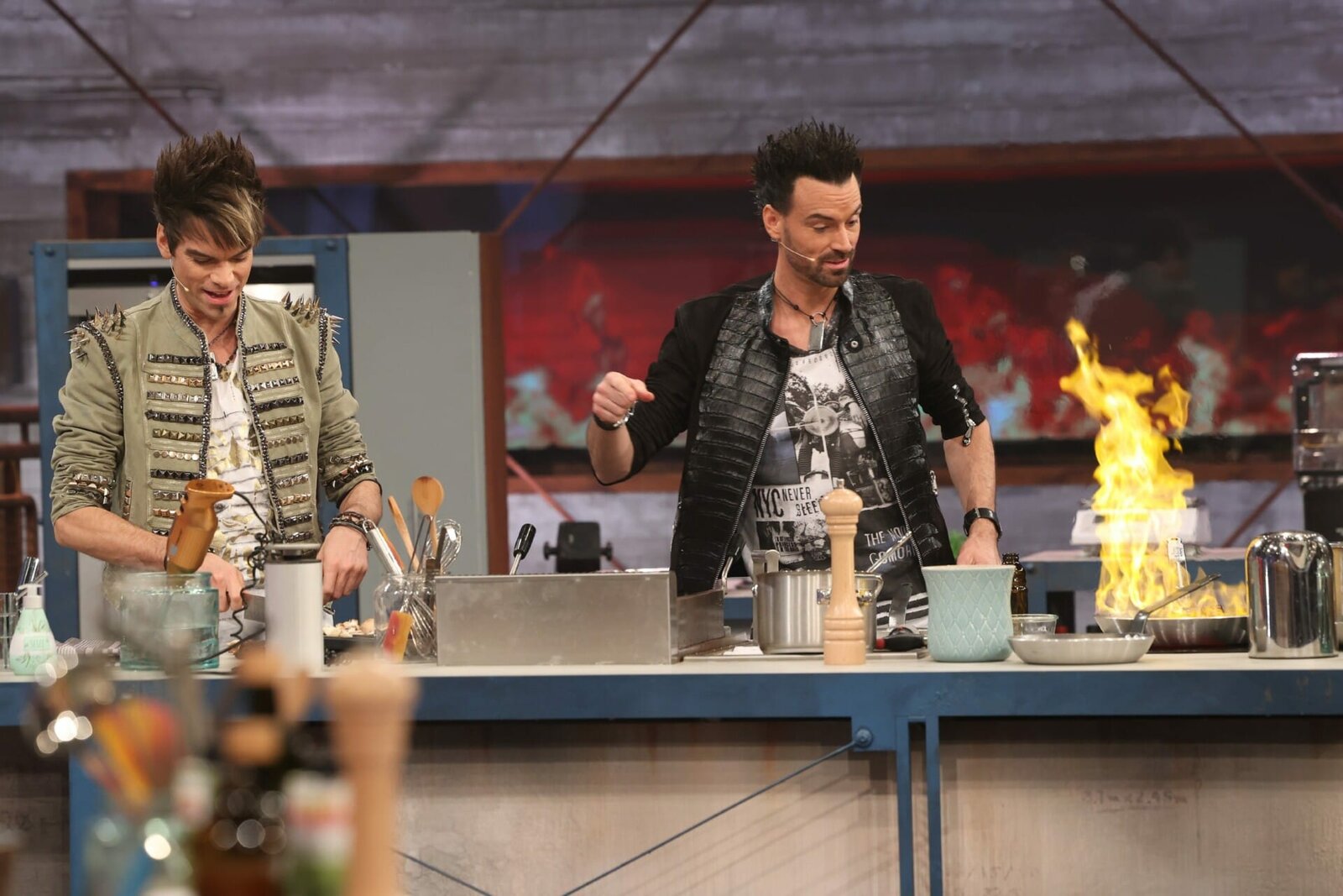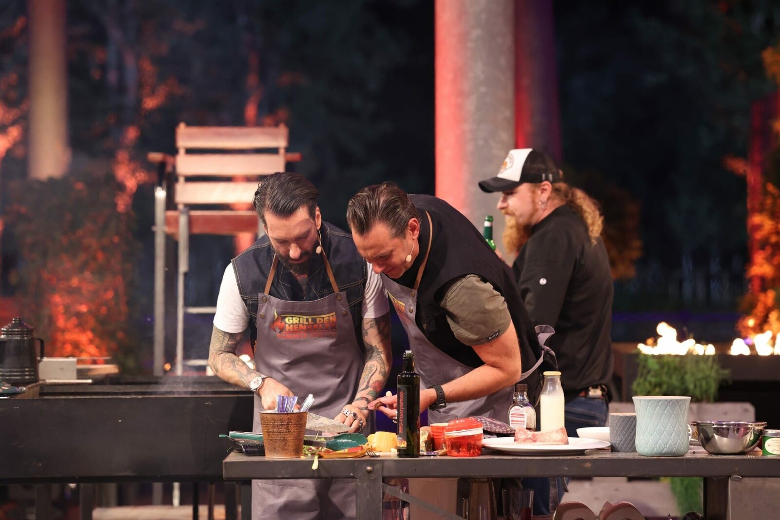 Sommer-Special (11)V.l.: Alec und Sascha von "The BossHoss", Kochcoach Ludwig MaurerBild: © TVNOW /Frank W. Hempel