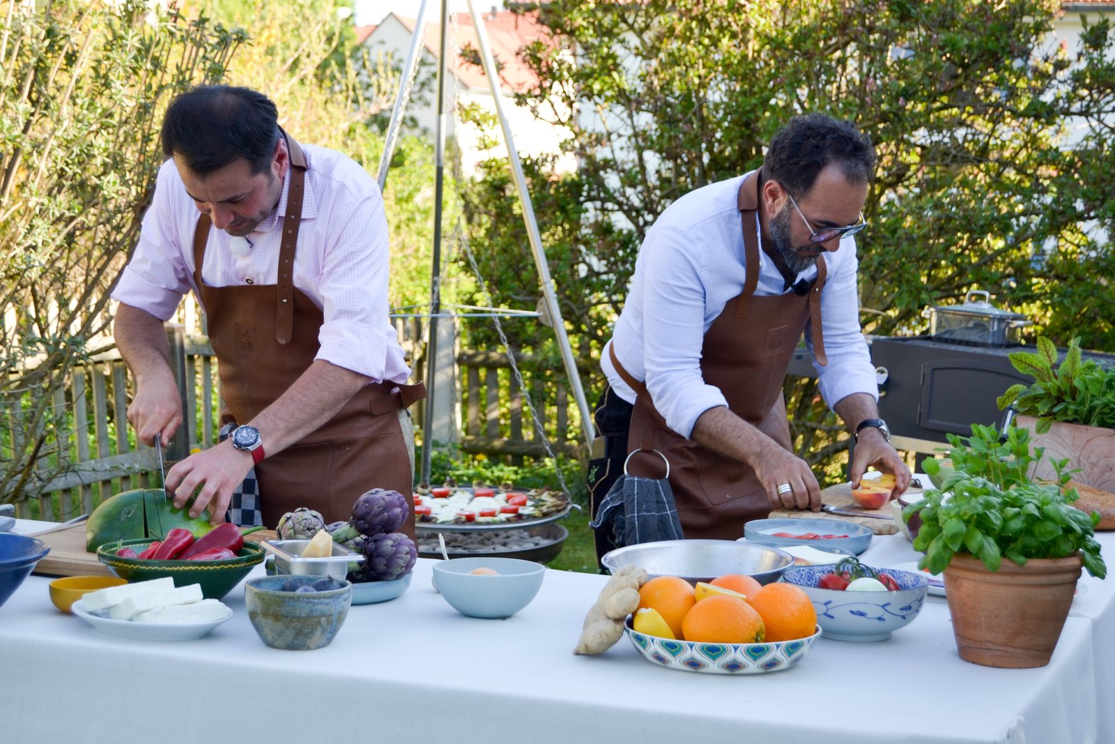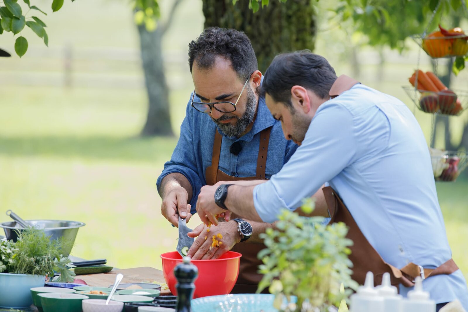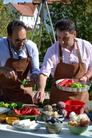 FischAdnan Maral (links) und Ali Güngörmüş bei der Zubereitung des Gemüses.Bild: © BR/Franziska Maral
