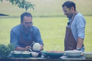 Verschiedenes vom HuhnAdnan Maral (links) und Ali Güngörmüş bereiten Gurkensalat zu.Bild: © ZDF und BR.