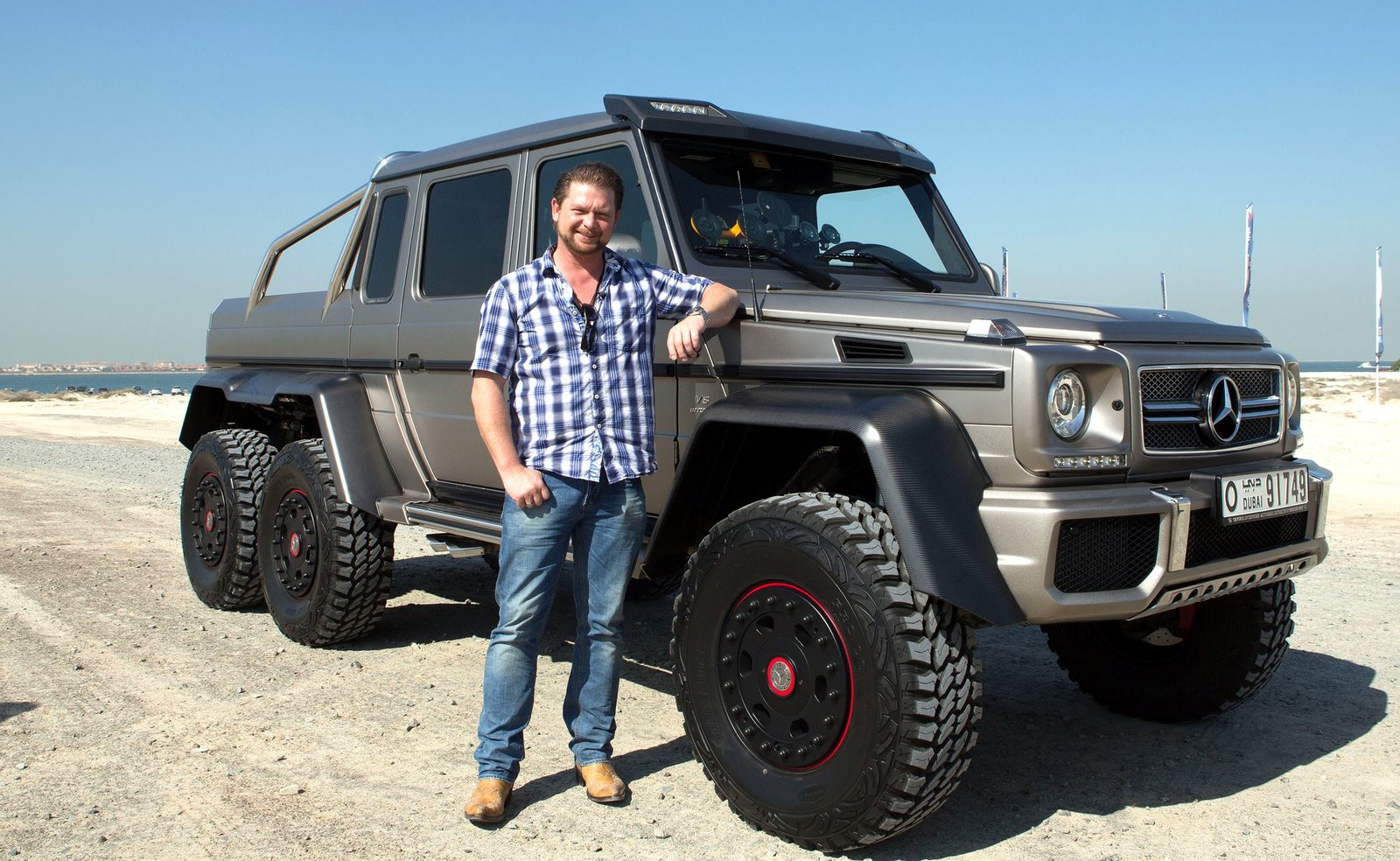 • GRIP-Moderator Det Müller geht auf große Abenteuertour und testet als einer der ersten TV-Moderatoren überhaupt den teuersten, schwersten und größten Geländewagen, den Mercedes je gebaut hat: den G63 AMG 6x6. Sechs angetriebene Räder, V8 Turbo mit 544 PS und über vier Tonnen Gewicht.