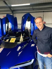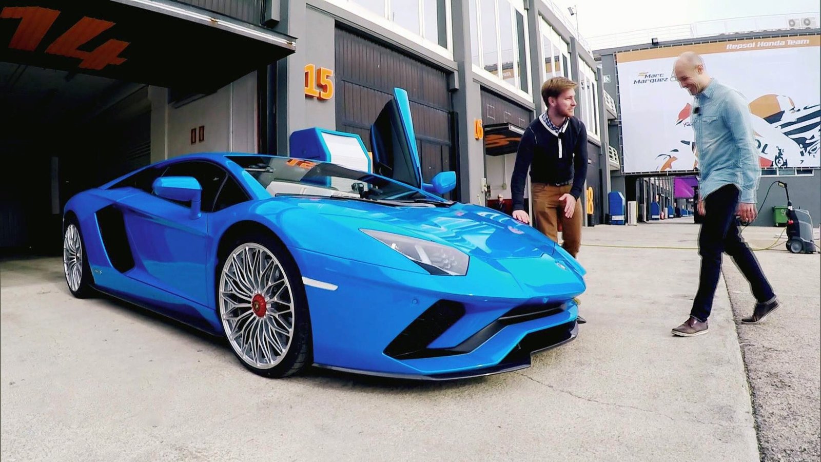 • Rennfahrer Jan Seyffarth (li.) mit GRIP-Zuschauer David (re.) und einem Lamborghini Aventador
