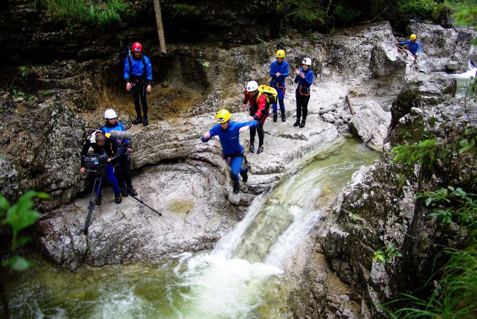 Schriftlich kommunizierenGRIPS Deutsch - Dreharbeiten beim Canyoning zum Thema "Schriftlich Kommunizieren". Auftrag: Einen Klassenausflug recherchieren und mit allem Schriftverkehr organisieren.Bild: © BR/Thomas Neuschwander