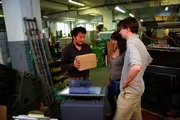 Oberfläche Würfel und KörperGRIPS Mathe - Geometrische Körper in allen Formen in der Kartonagenfabrik. Gleich wird Lehrer Basti Wohlrab den Karton auseinanderschneiden um alle Flächen des Kartons in einem Netzbild zu zeigen.Bild: © BR/Thomas Neuschwander